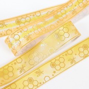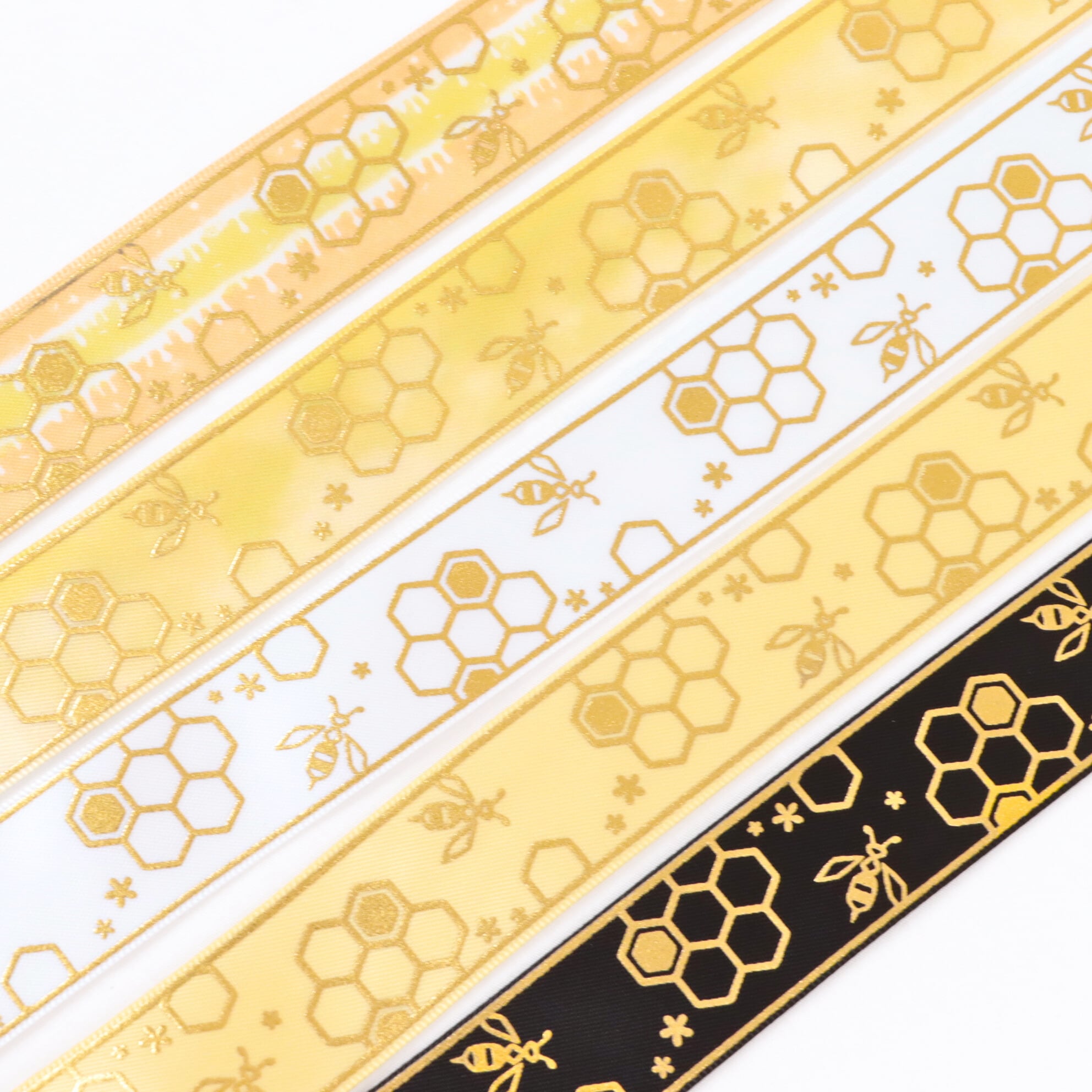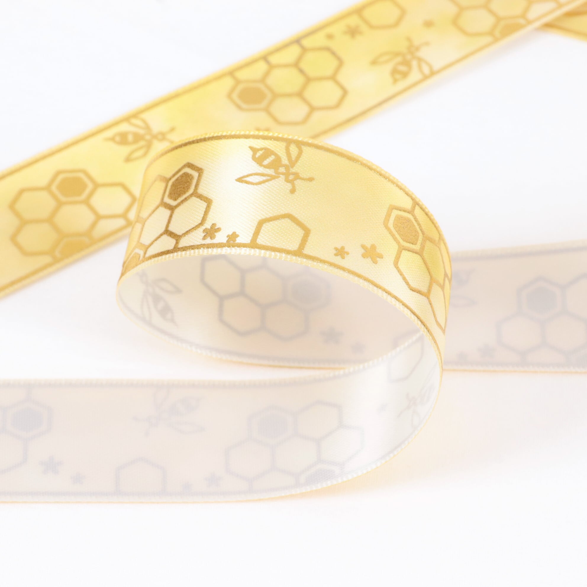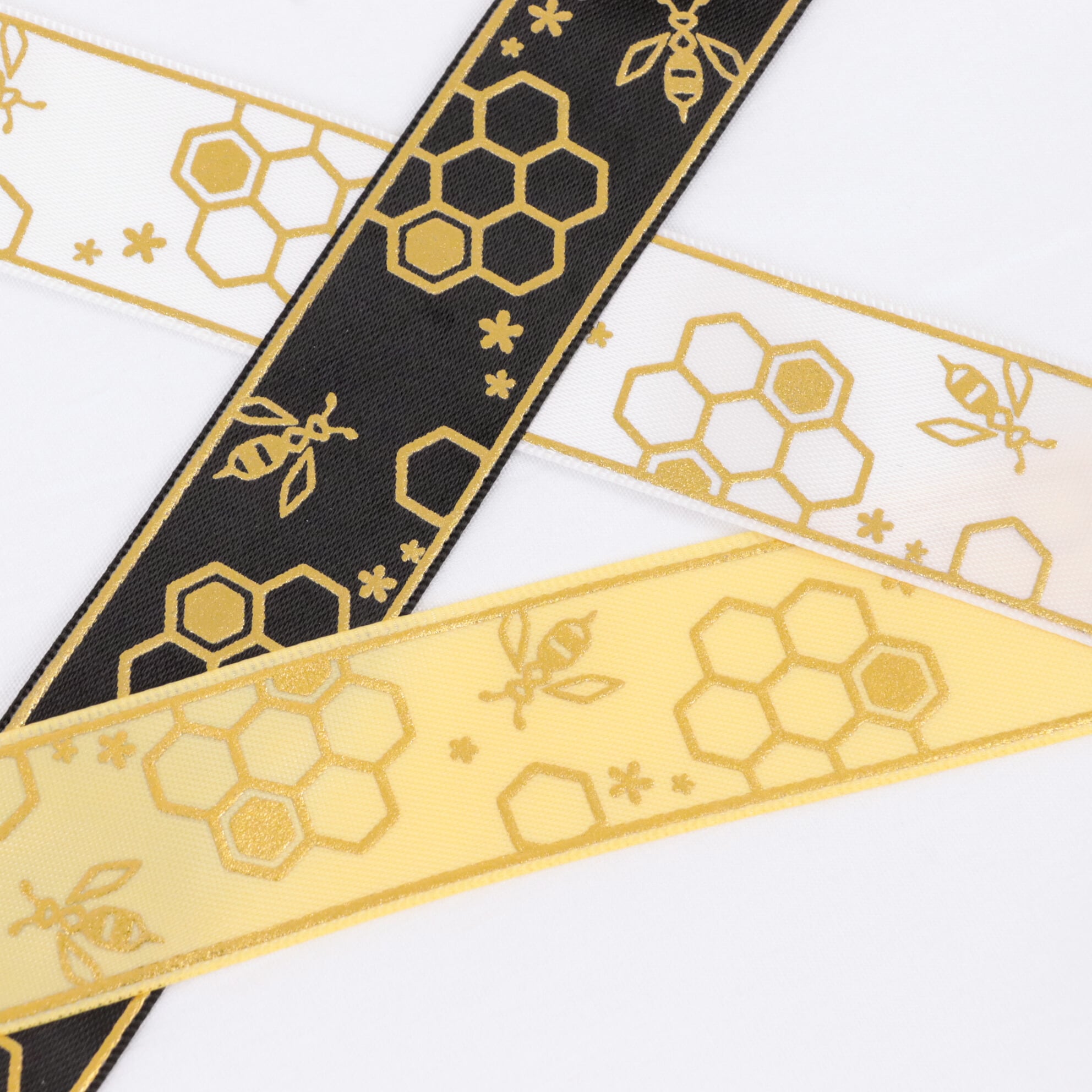 全色セット【ISEKIオリジナル】蜂 ハニカム 柄 サテン リボン 幅約25mm 布 プリント ゴールド 01020062 ハンドメイド 資材 装飾 飾り ロゼット 硬質カード デコ | リボンとパーツのお店 ISEKI オンラインショップ