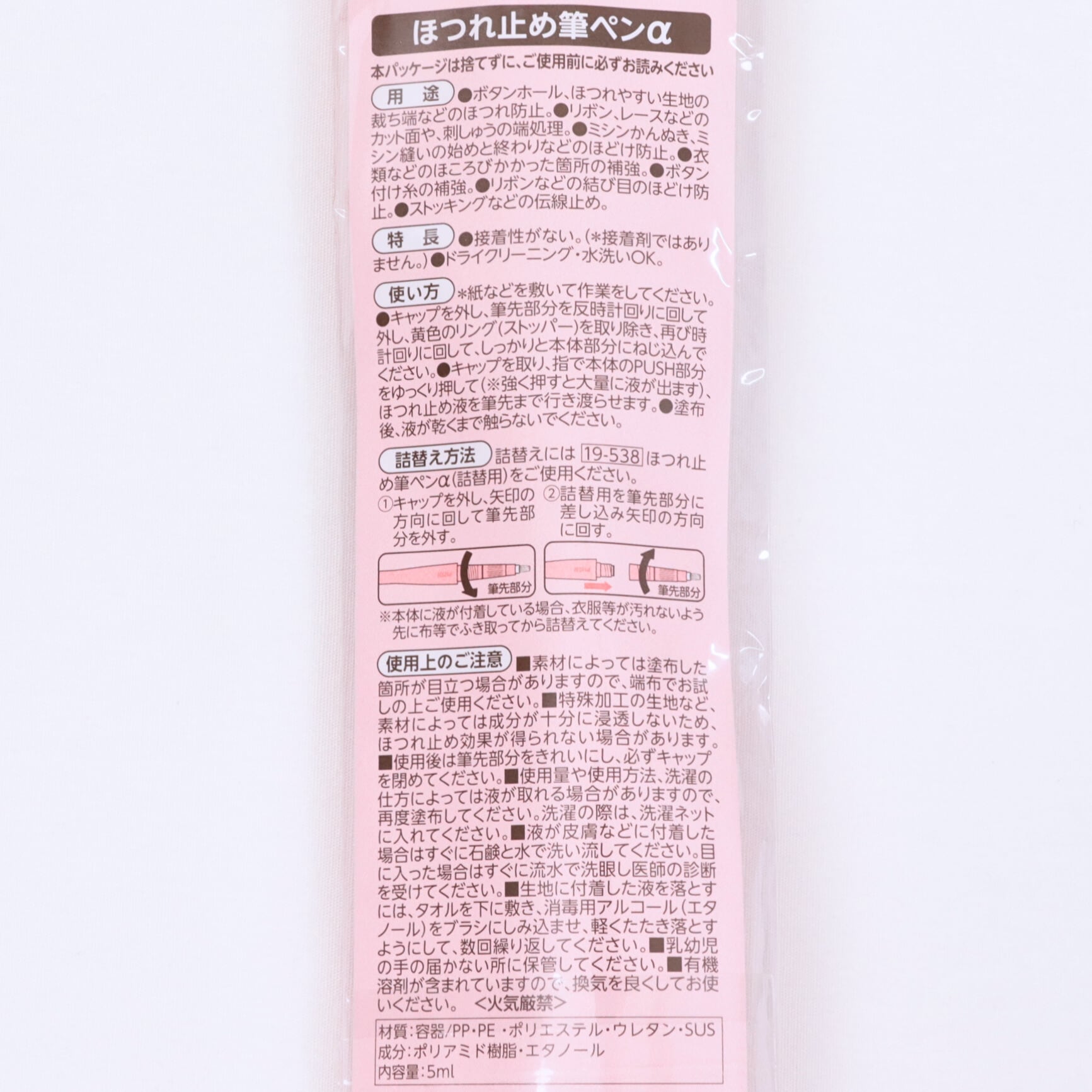 ・ボタンホール、ほつれやすい生地などのほつれ防止