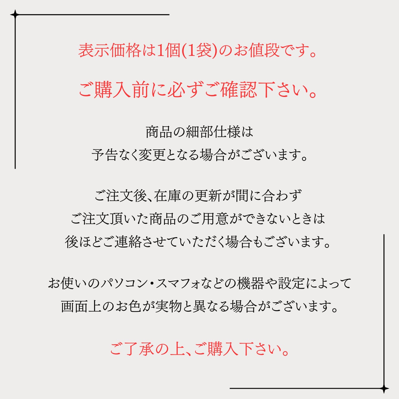 ※ご注文後、在庫数更新が間に合わず、ご注文頂いた商品が用意できない際は後ほどご連絡させていただく場合もございます。