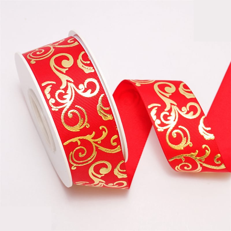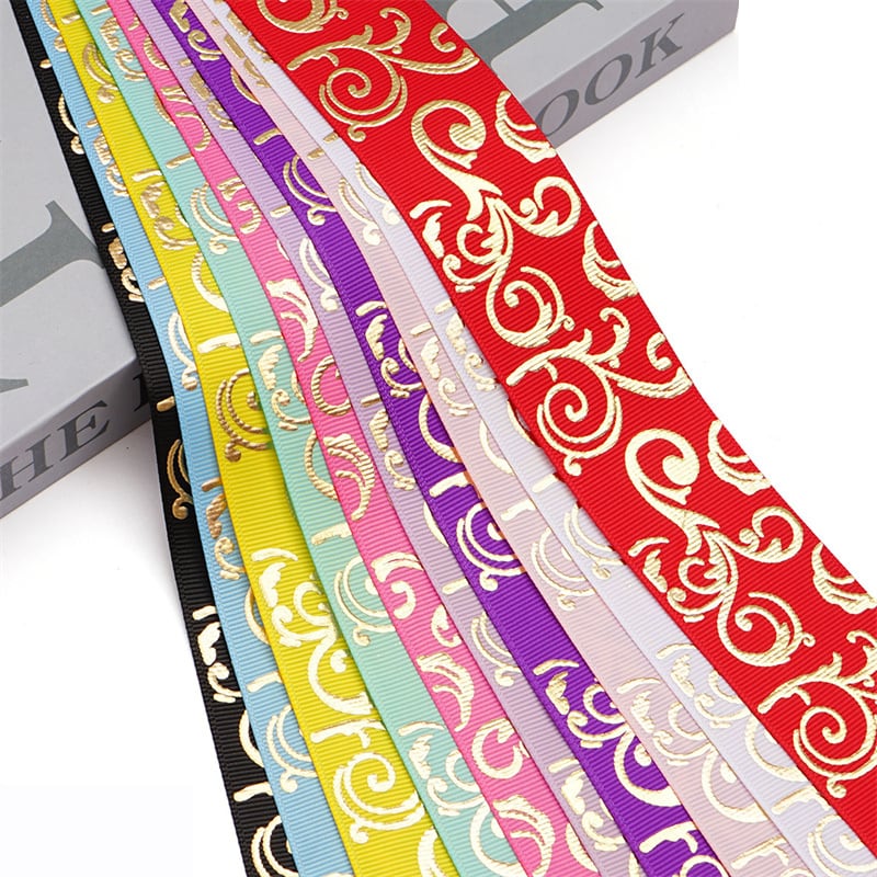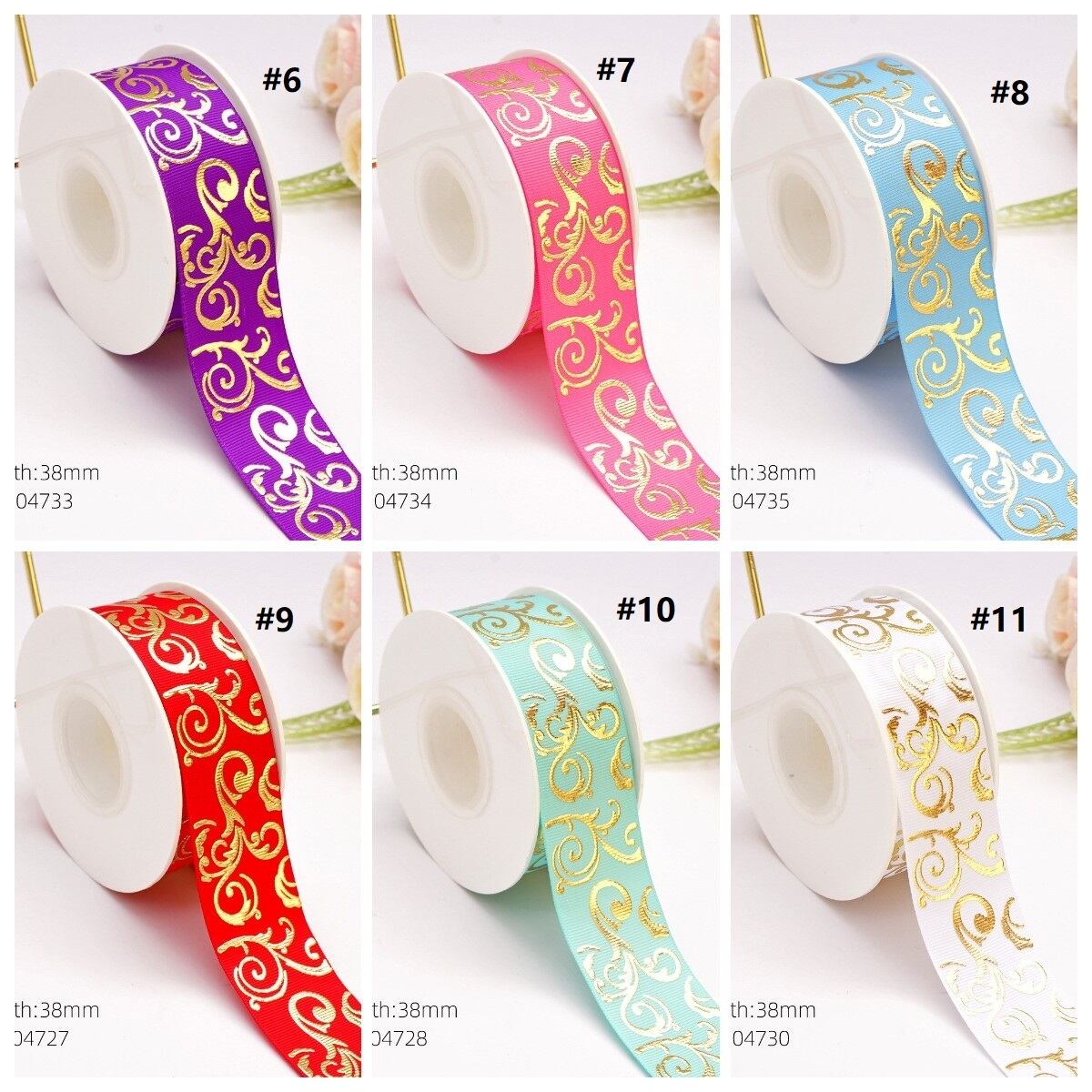 草模様柄 グログラン リボン 幅約38mm 布 プリント ゴールド 01020005 ハンドメイド 資材 装飾 飾り ロゼット 硬質カード デコ | リボンとパーツのお店 ISEKI オンラインショップ