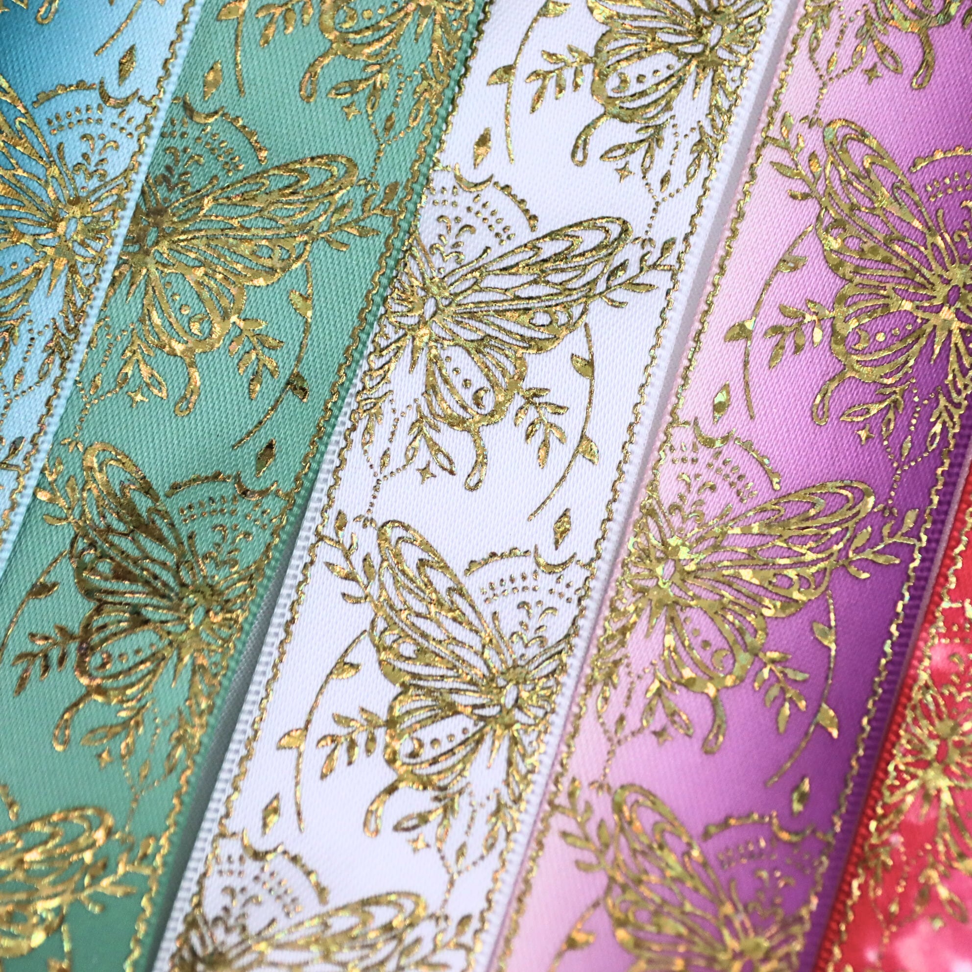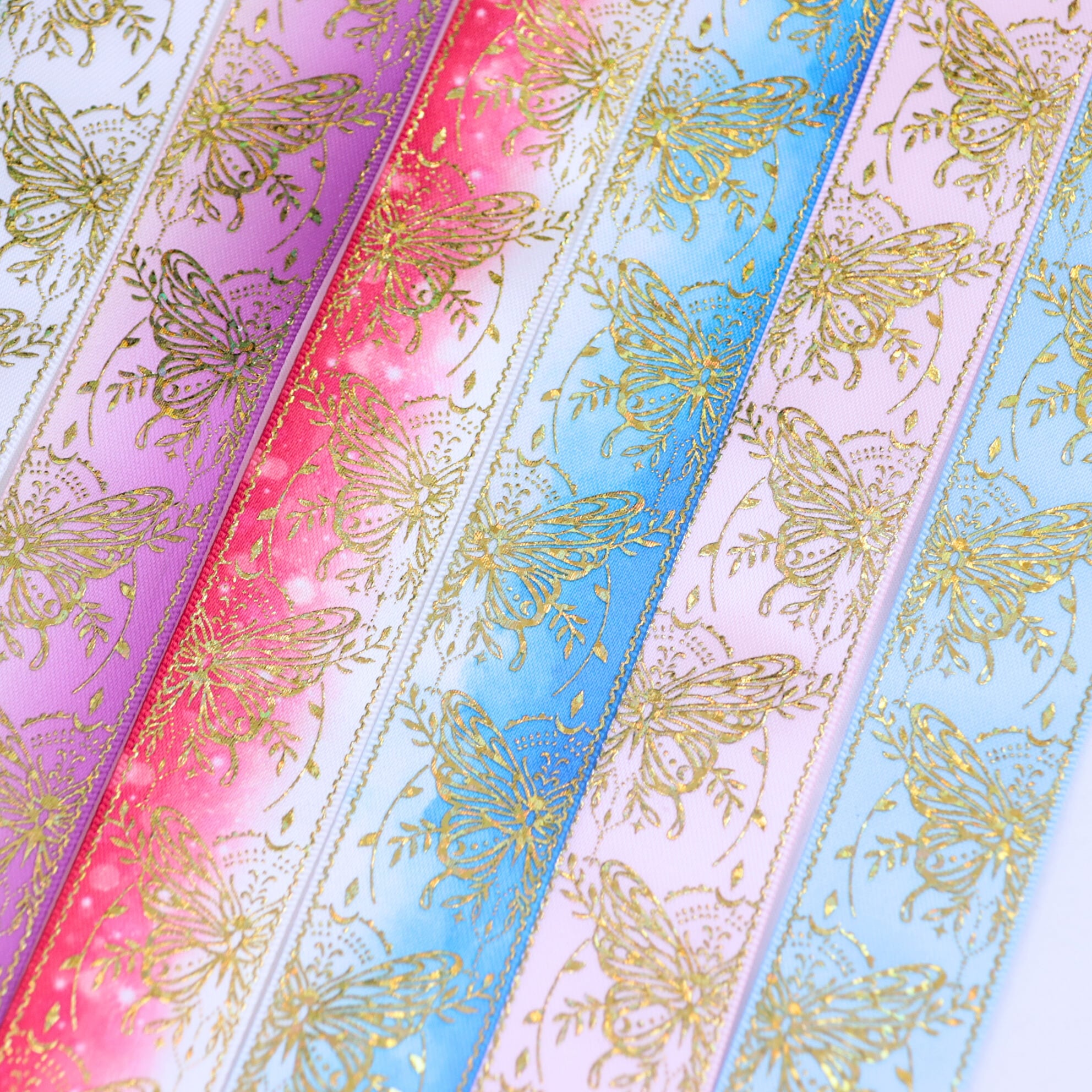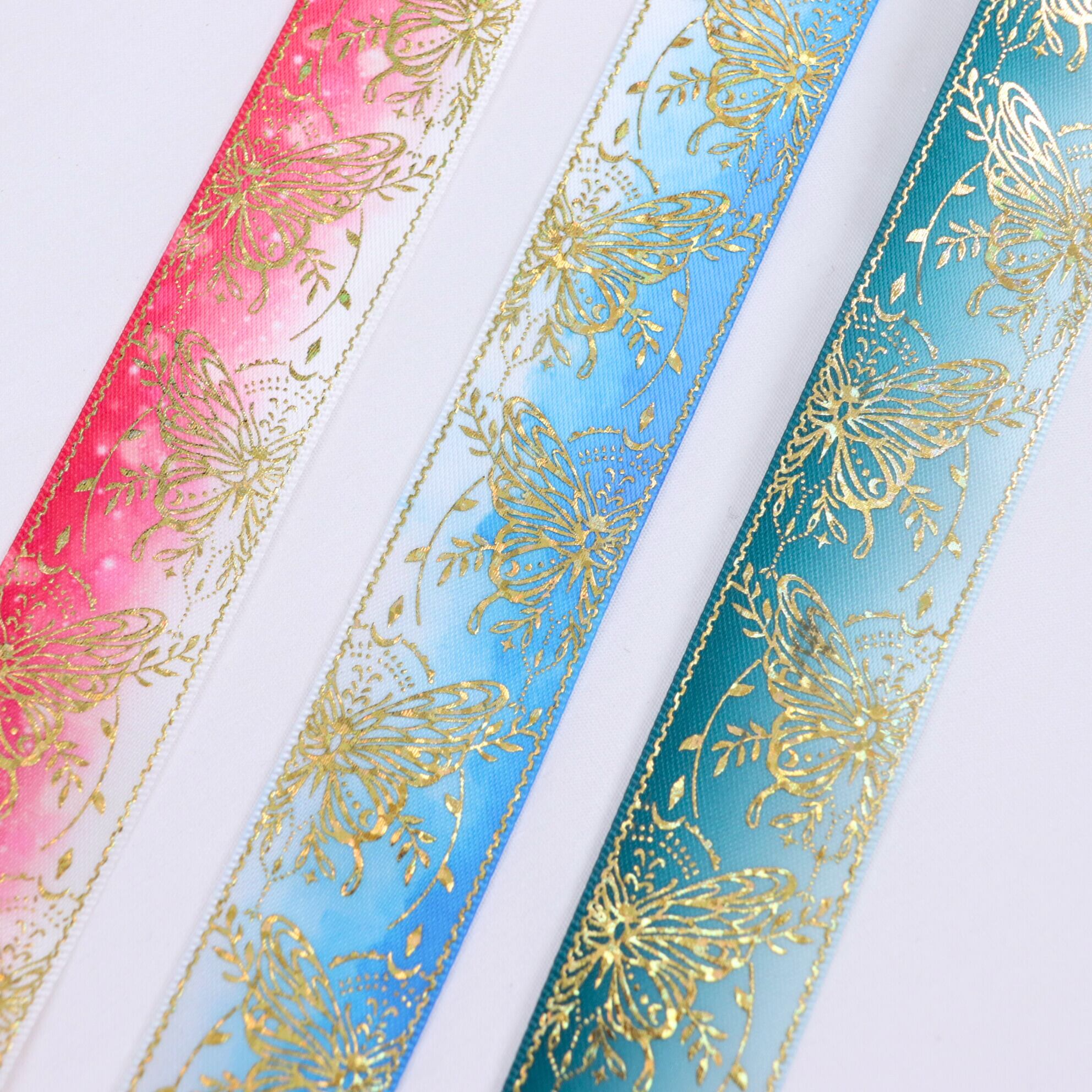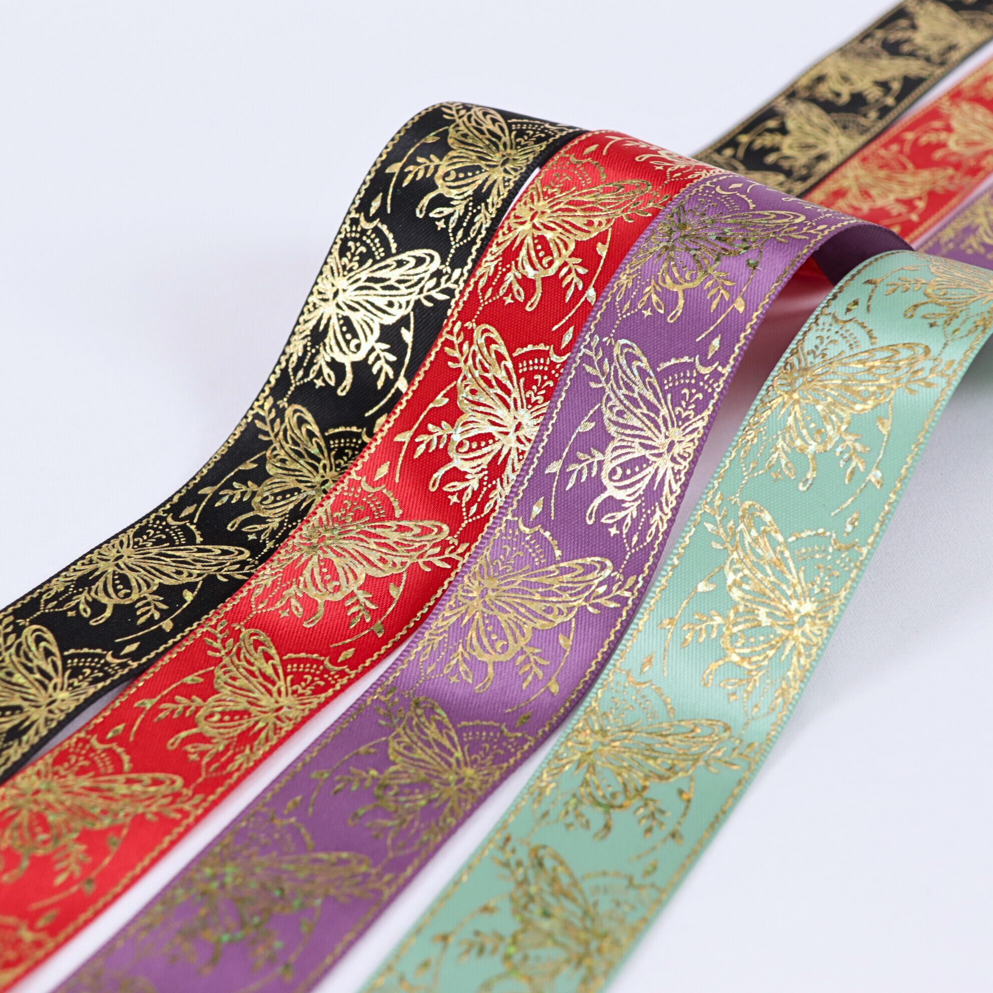 蝶々柄 サテン リボン 幅約25mm 布 プリント ゴールド 01020006 ハンドメイド 資材 装飾 飾り ロゼット 硬質カード デコ