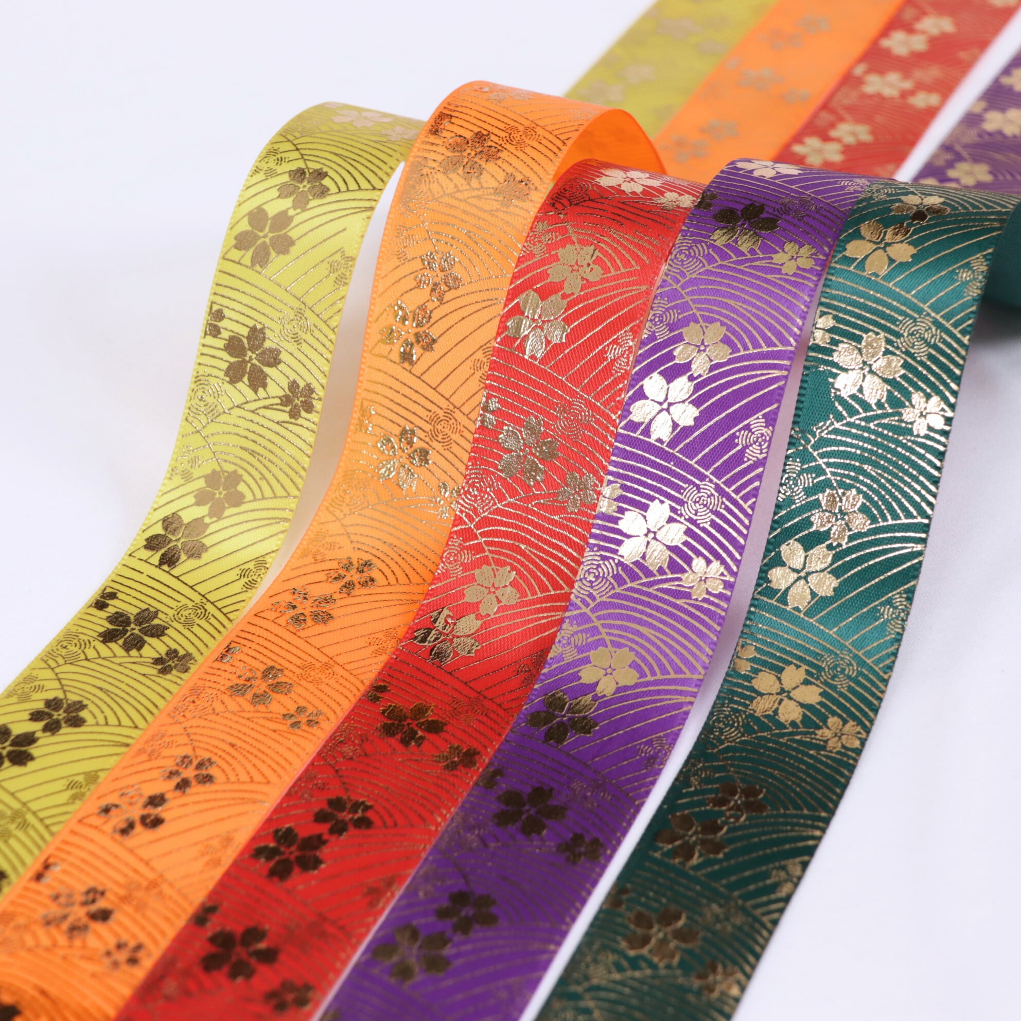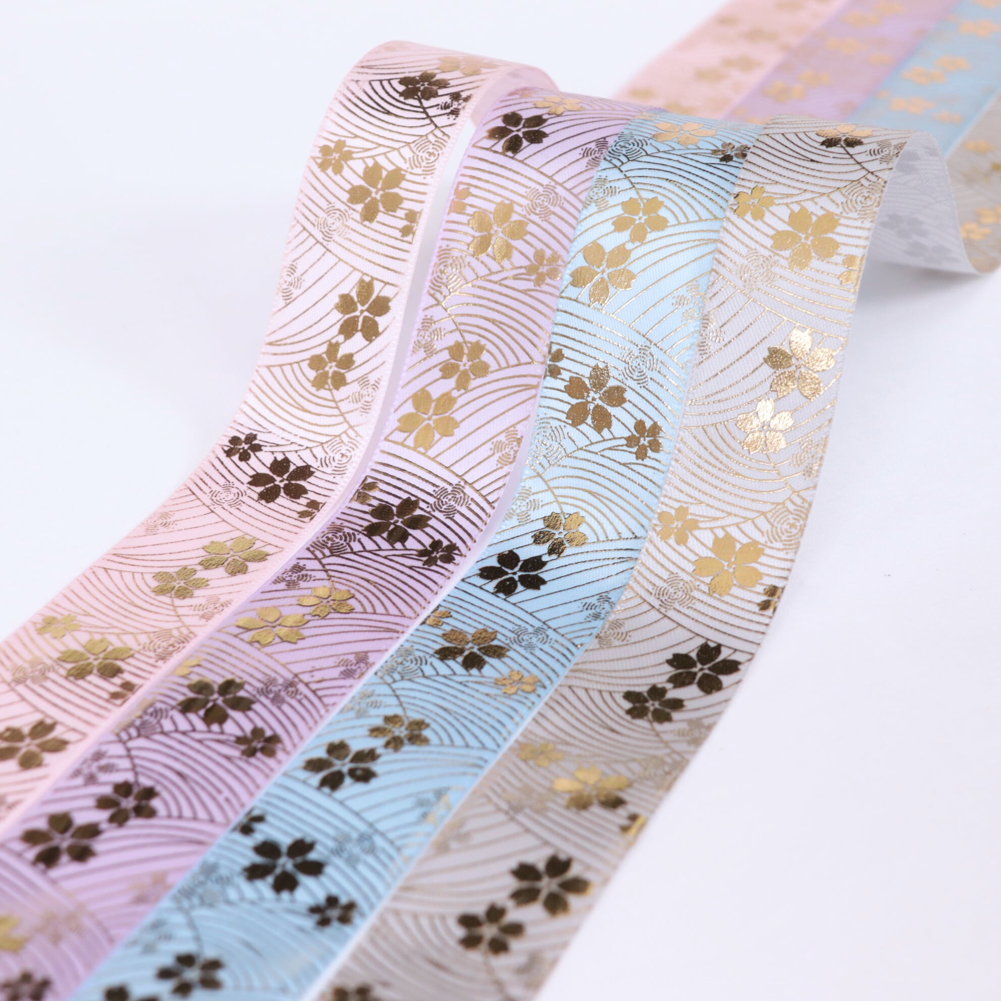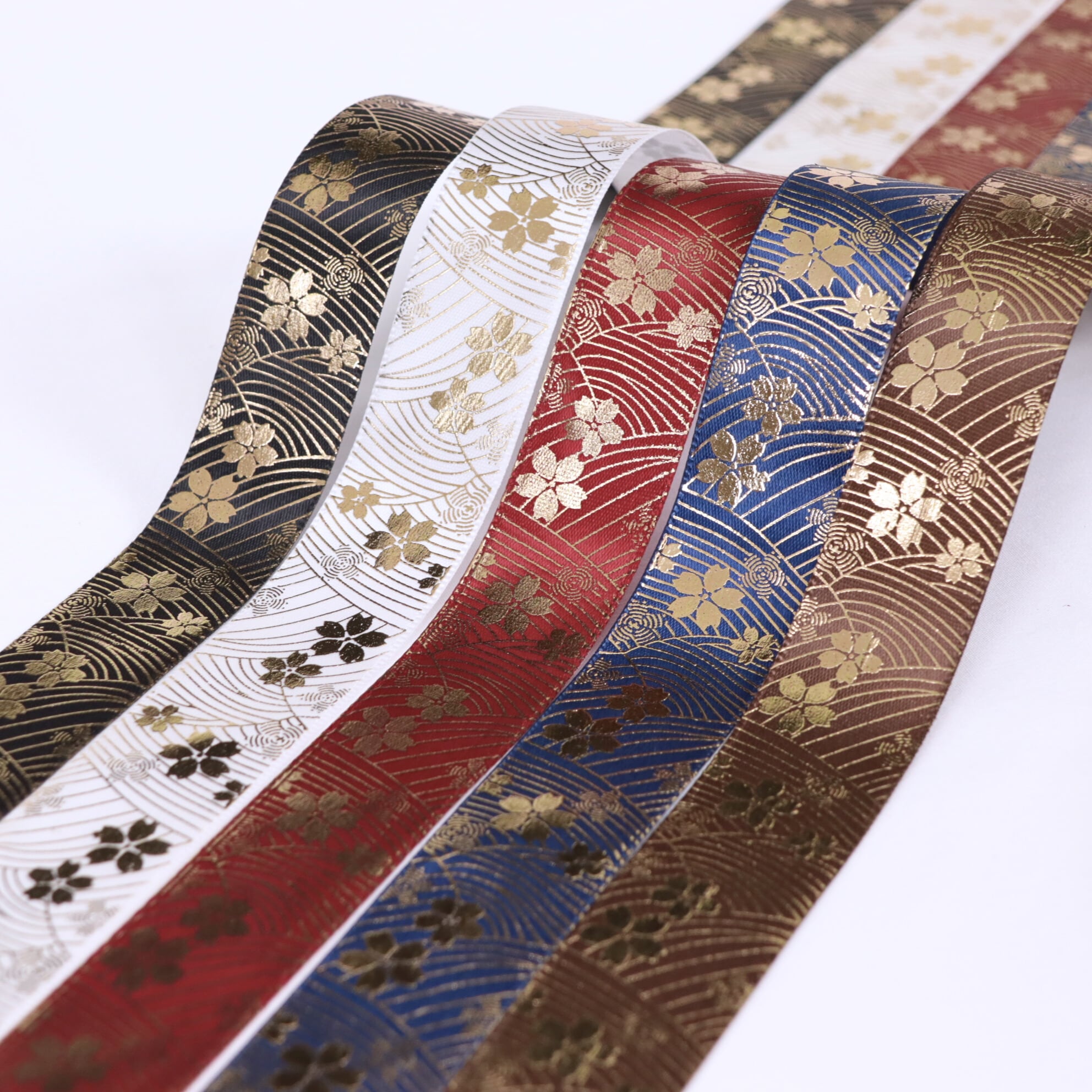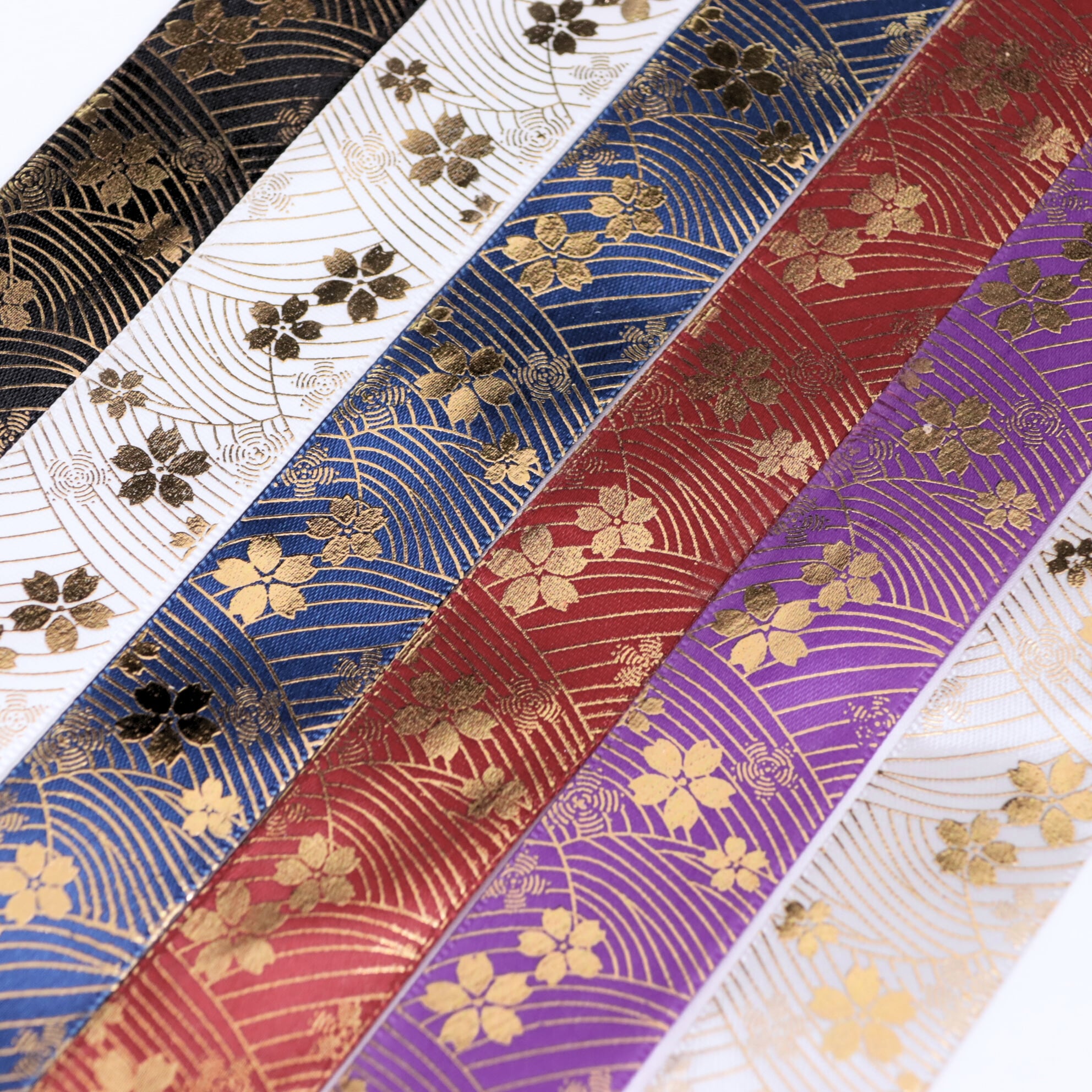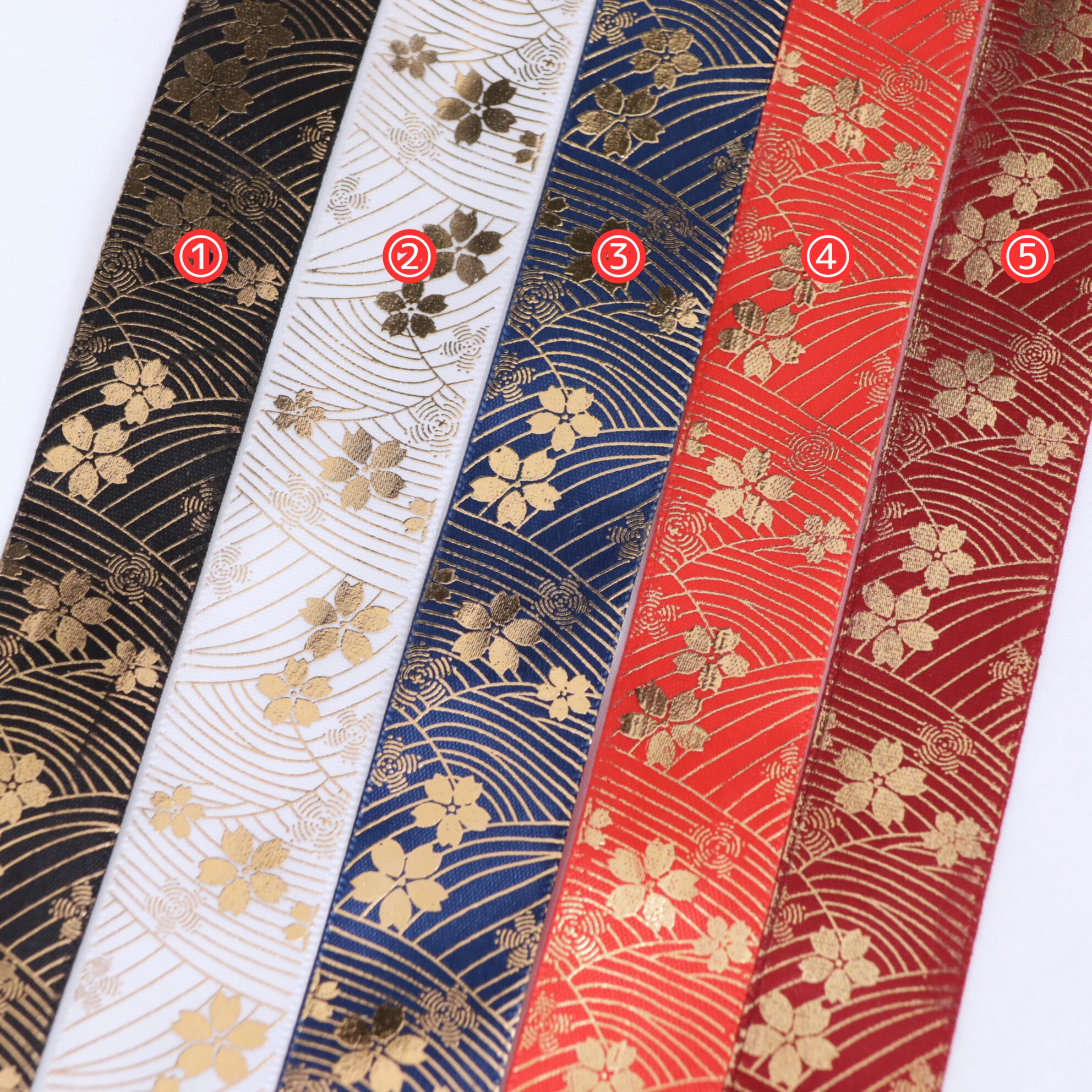 さくらと波柄 サテン リボン 幅約25mm 布 プリント ゴールド 01020011 ハンドメイド 資材 装飾 飾り ロゼット 硬質カード デコ | リボンとパーツのお店 ISEKI オンラインショップ