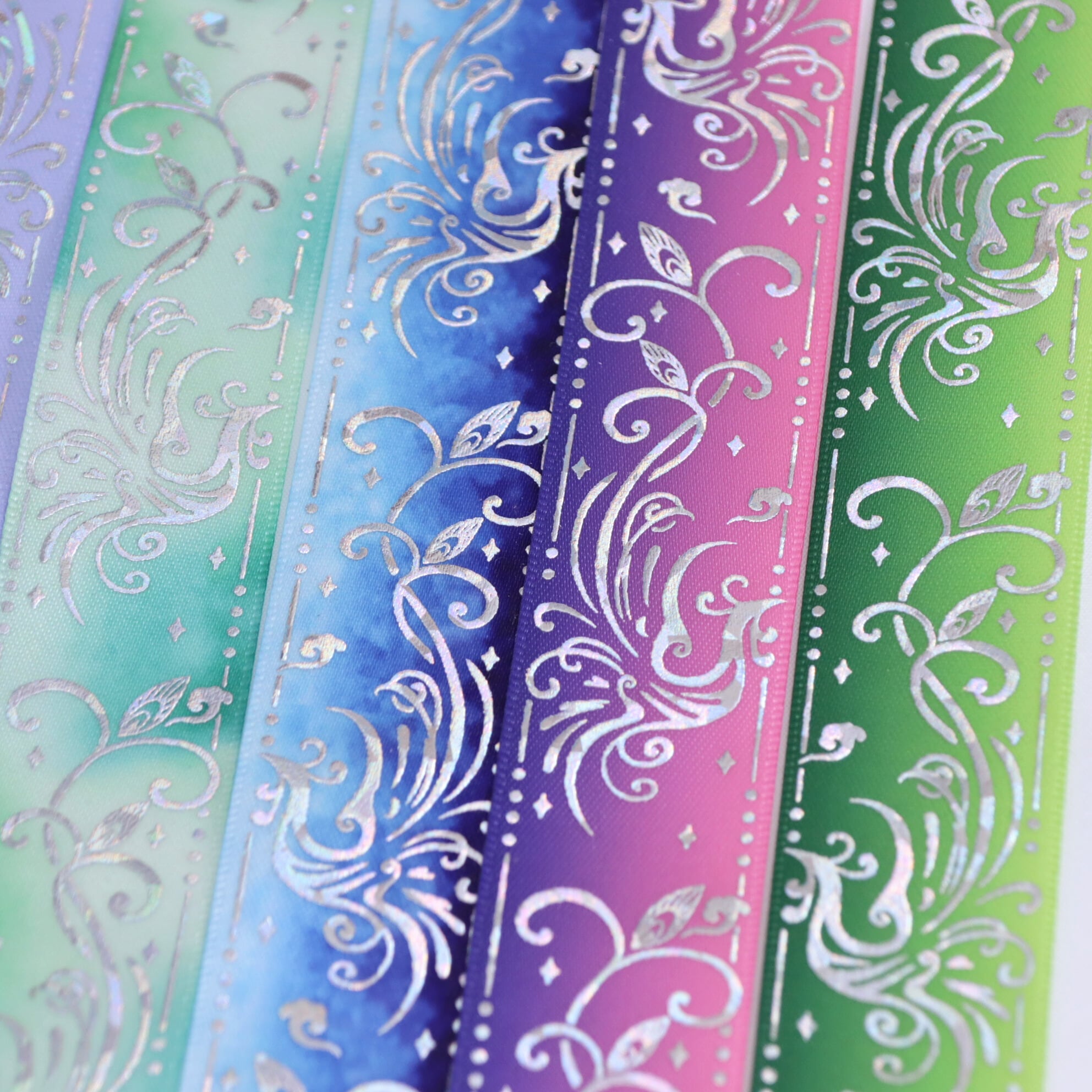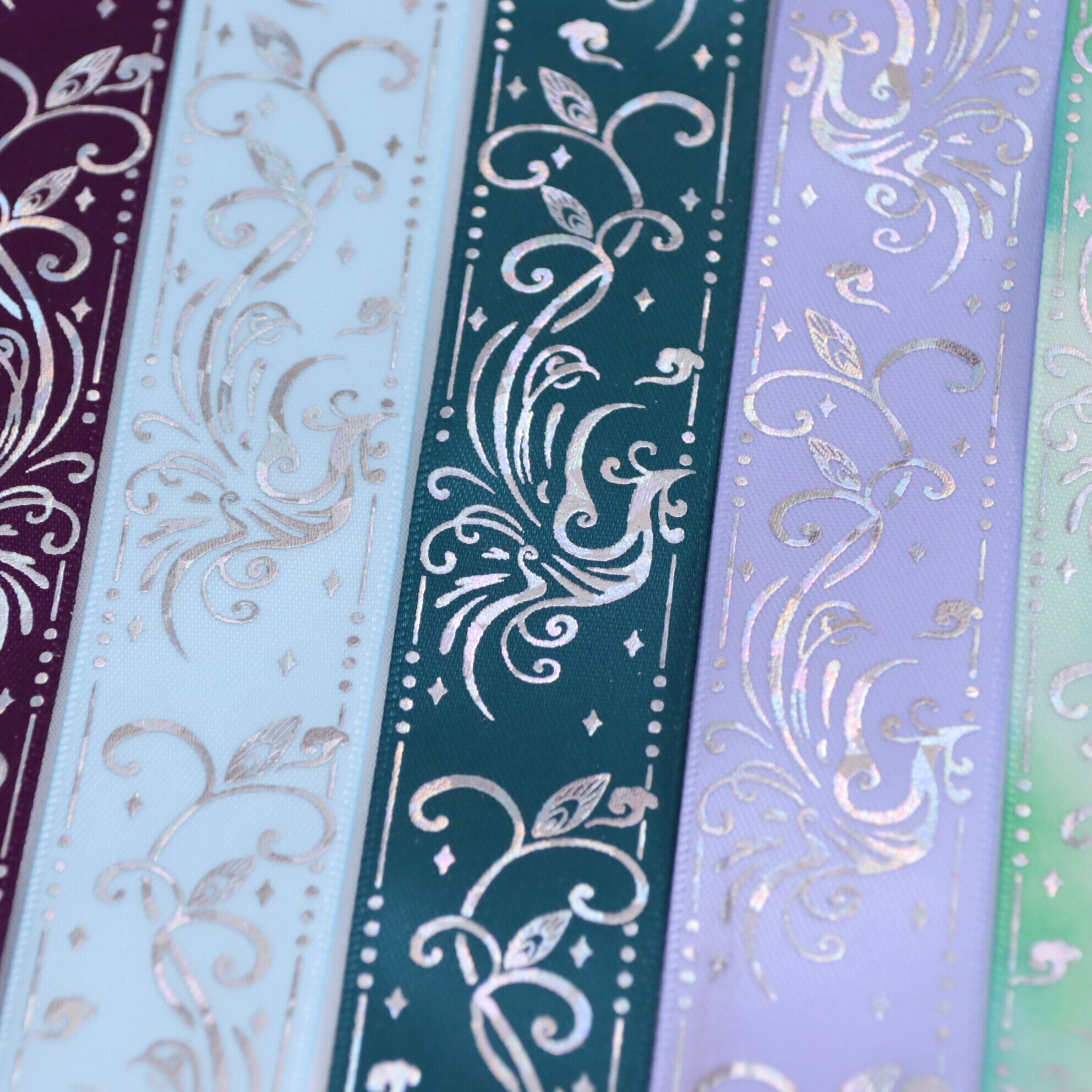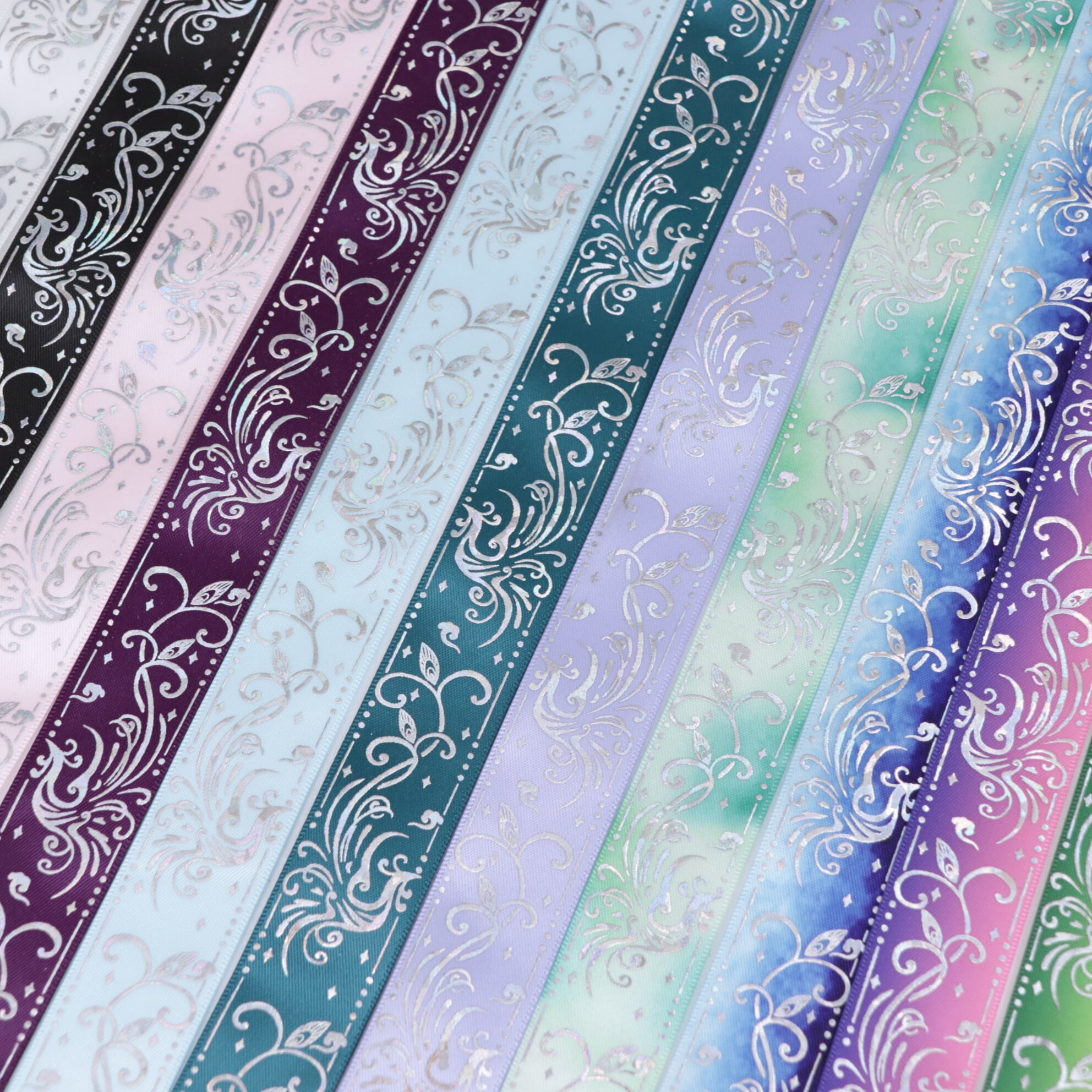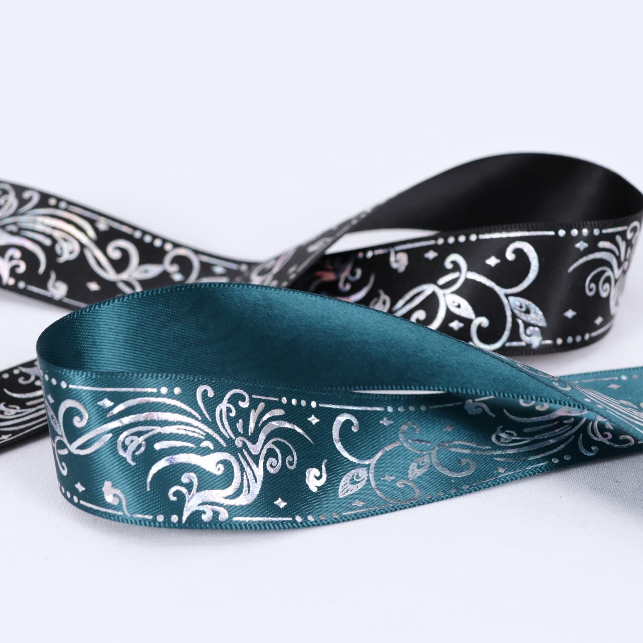 鳳凰柄 サテン リボン 幅約25mm 布 プリント シルバー 01020015 ハンドメイド 資材 装飾 飾り ロゼット 硬質カード デコ