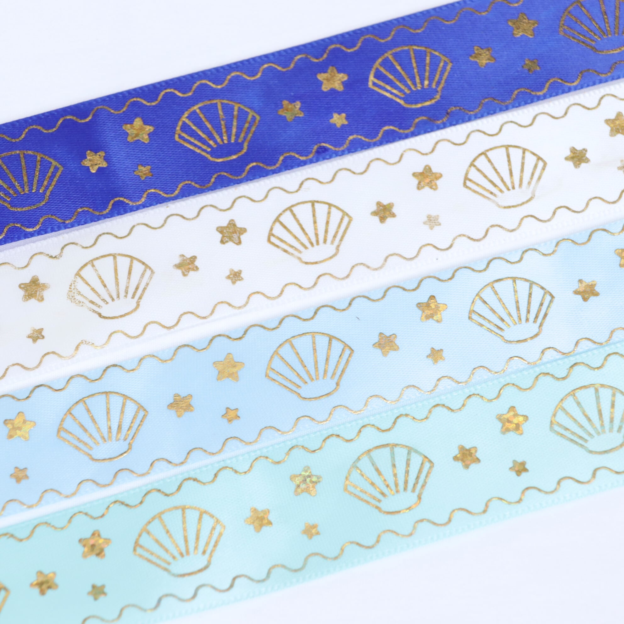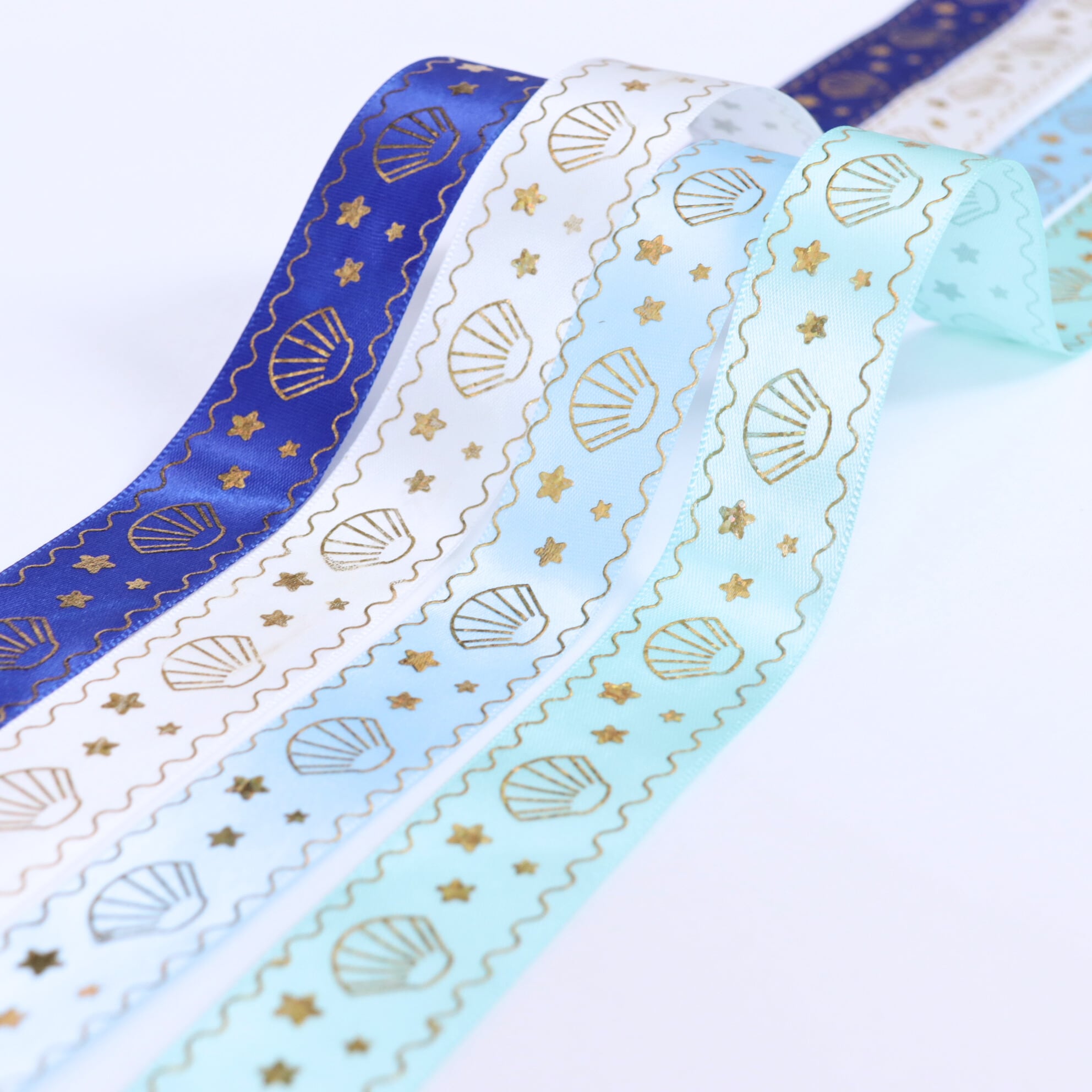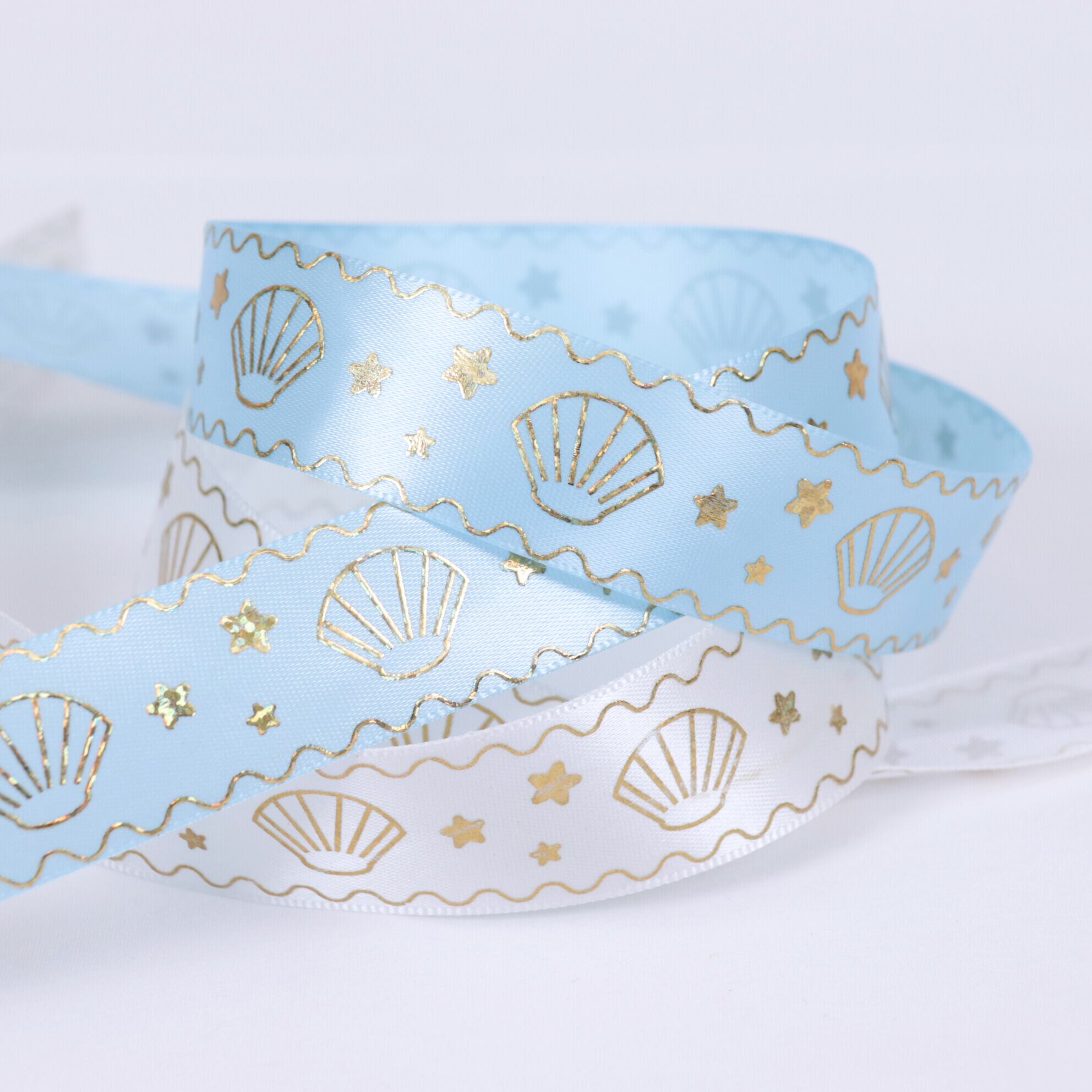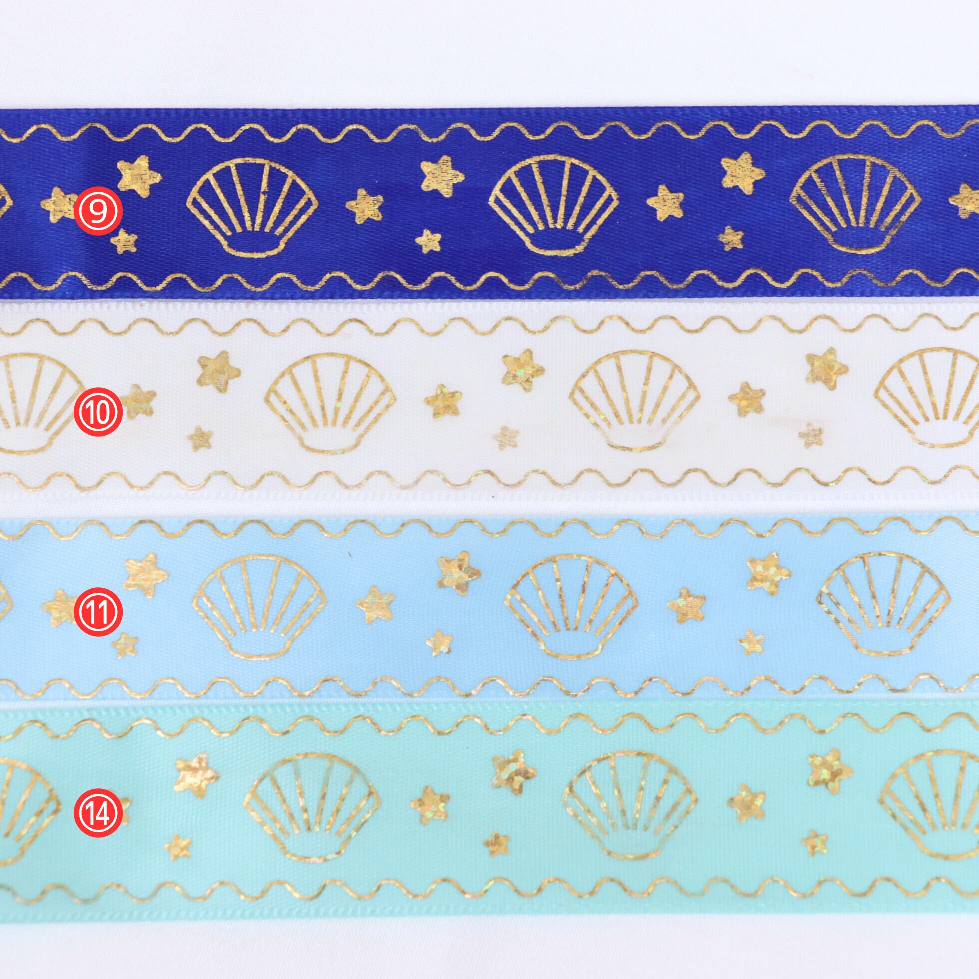 マリン柄 サテン リボン 幅約25mm 布 プリント ゴールド 貝殻 星 01020019 ハンドメイド 資材 装飾 飾り ロゼット 硬質カード デコ | リボンとパーツのお店 ISEKI オンラインショップ