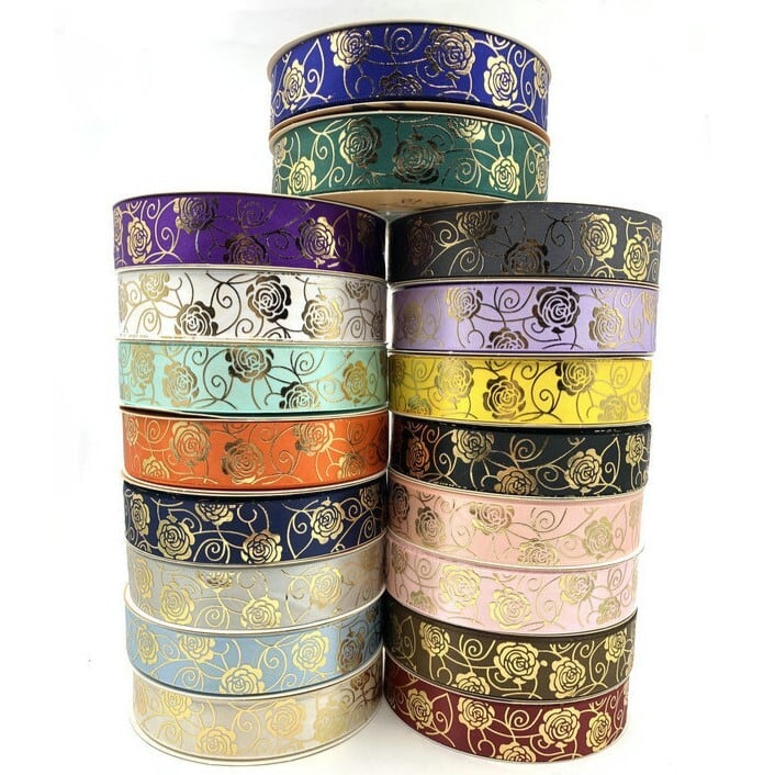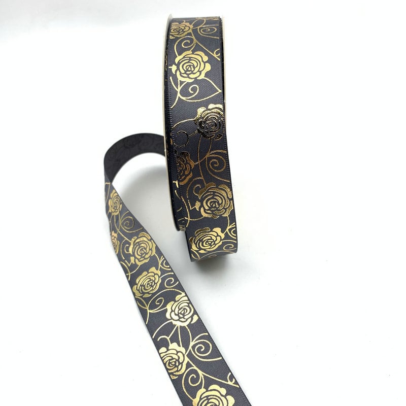 薔薇柄 サテン リボン 幅約25mm 布 プリント ゴールド 花 01020023 ハンドメイド 資材 装飾 飾り ロゼット 硬質カード デコ | リボンとパーツのお店 ISEKI オンラインショップ