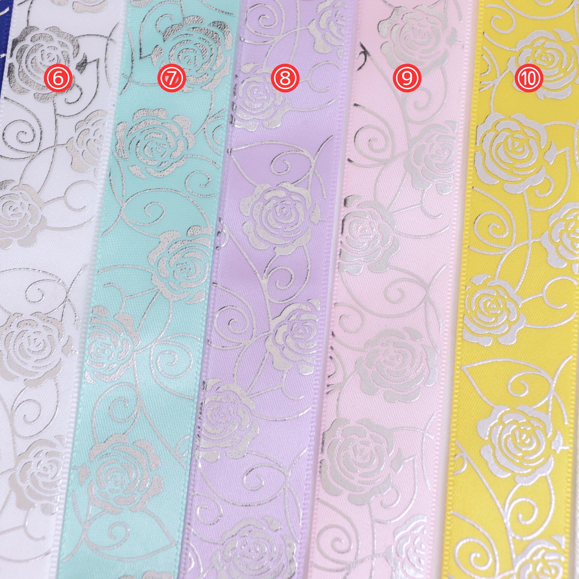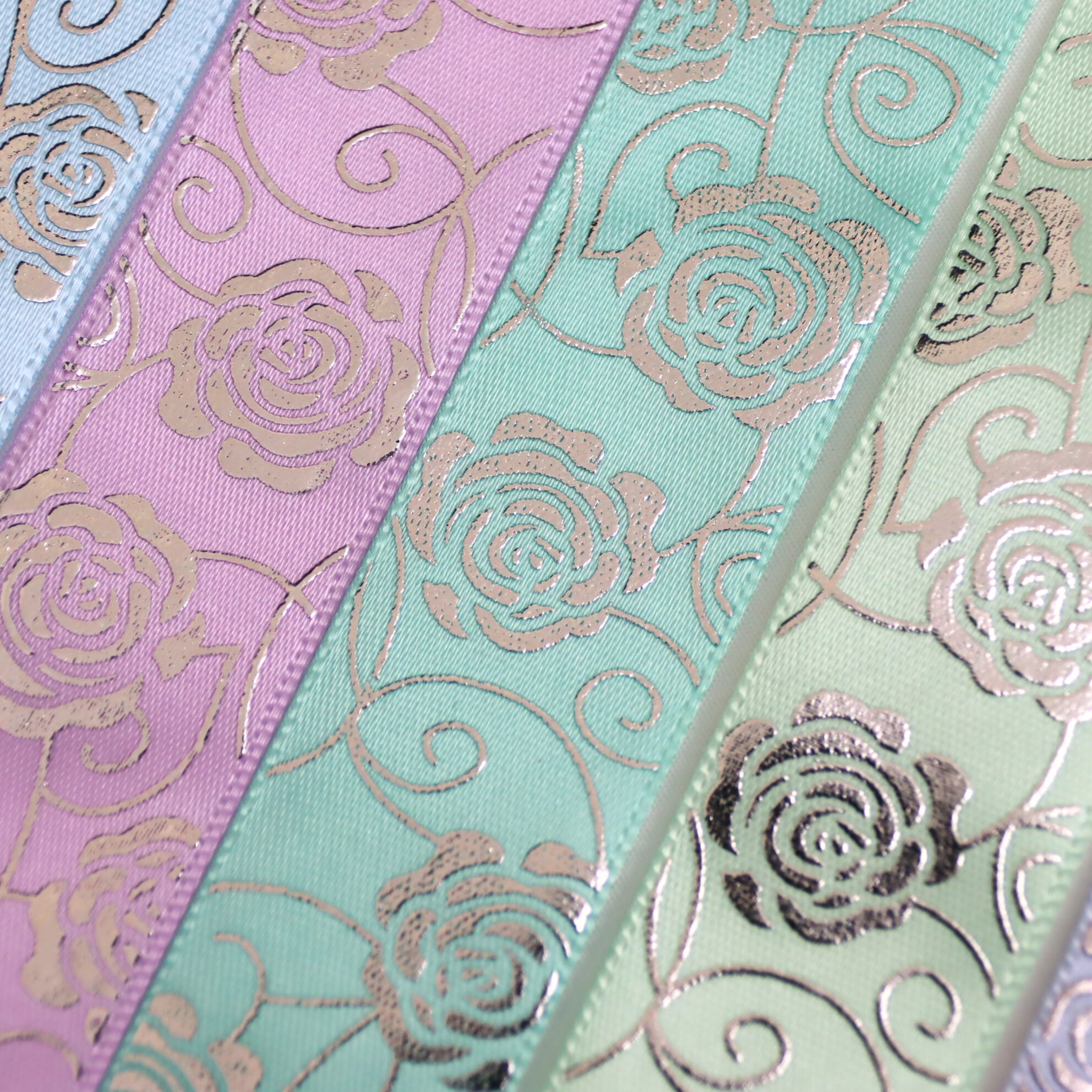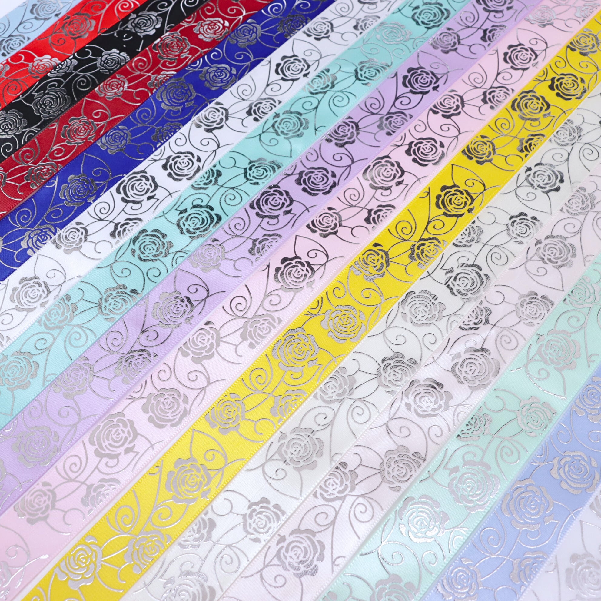 薔薇柄 サテン リボン 幅約25mm 布 プリント シルバー 花 01020024 ハンドメイド 資材 装飾 飾り ロゼット 硬質カード デコ | リボンとパーツのお店 ISEKI オンラインショップ