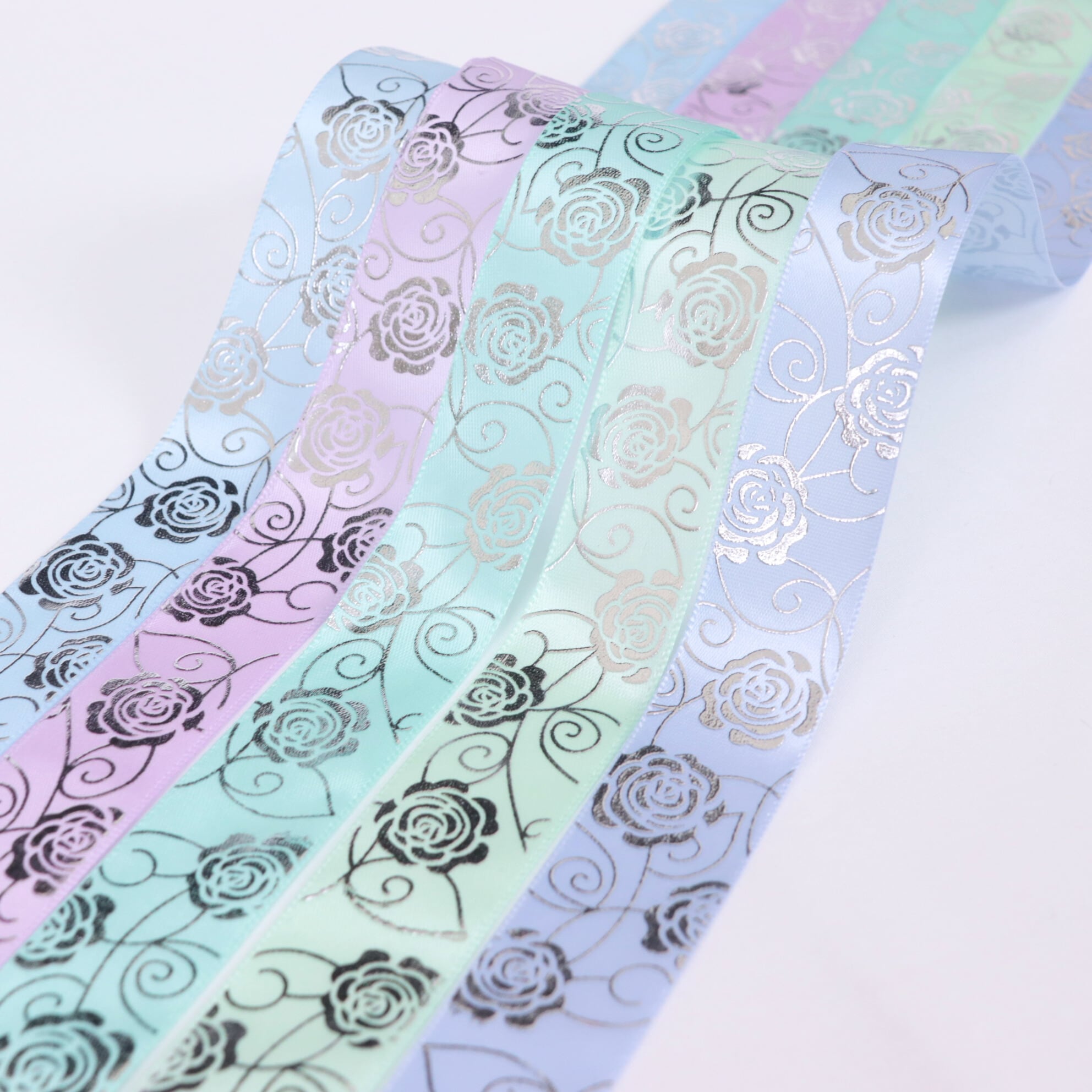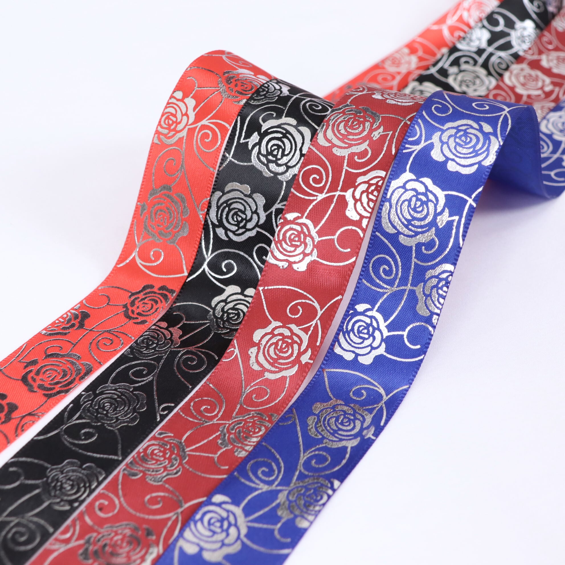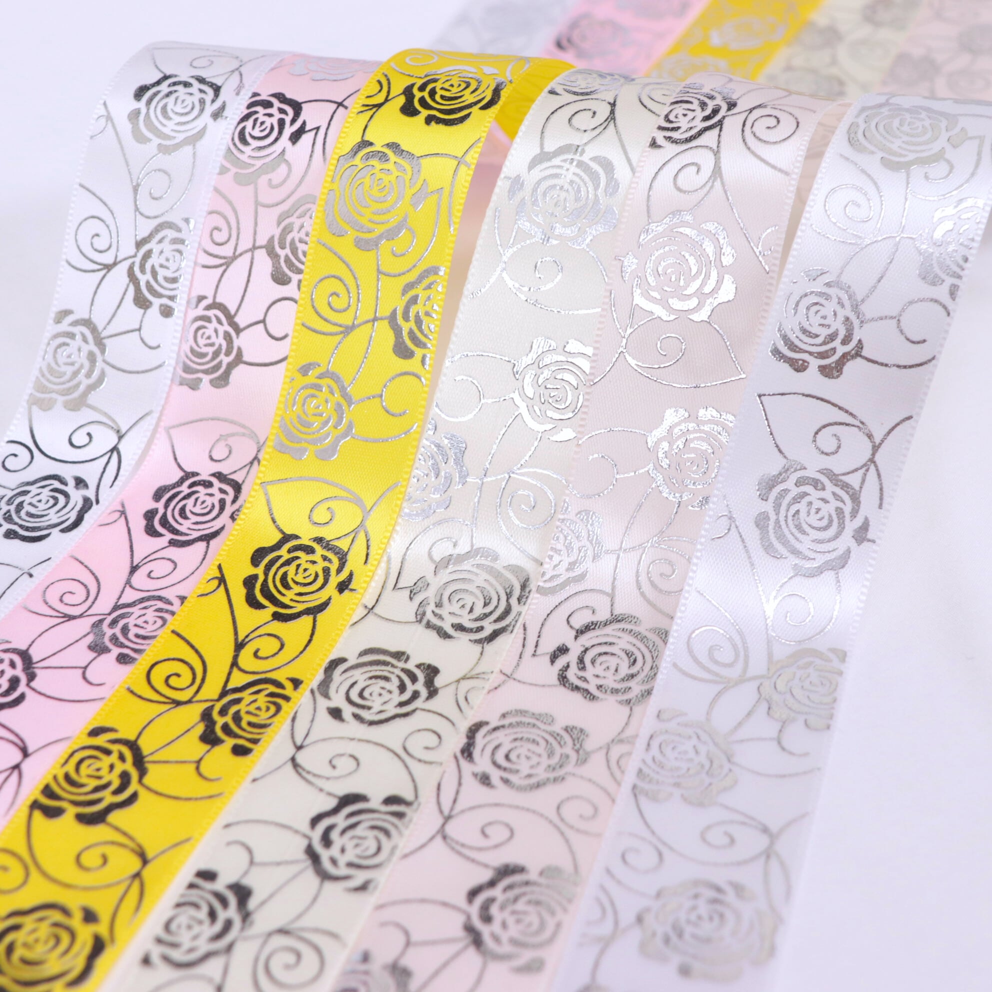 薔薇柄 サテン リボン 幅約25mm 布 プリント シルバー 花 01020024 ハンドメイド 資材 装飾 飾り ロゼット 硬質カード デコ | リボンとパーツのお店 ISEKI オンラインショップ