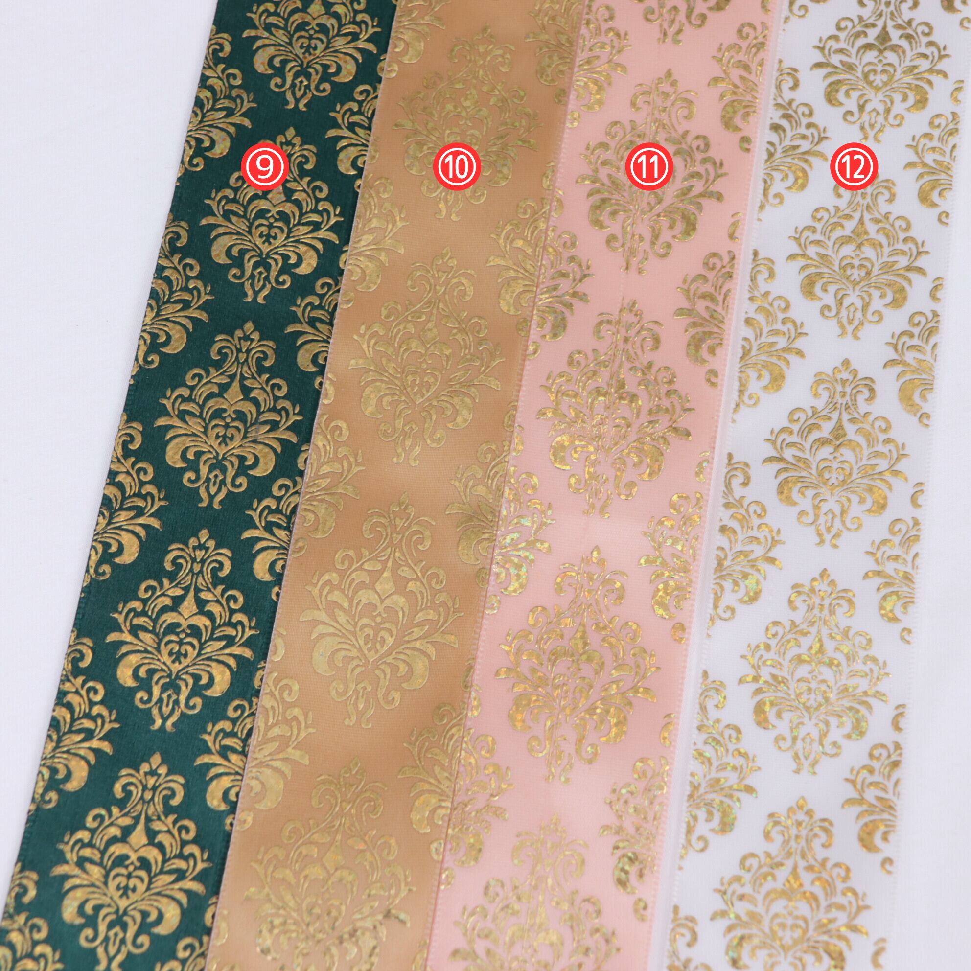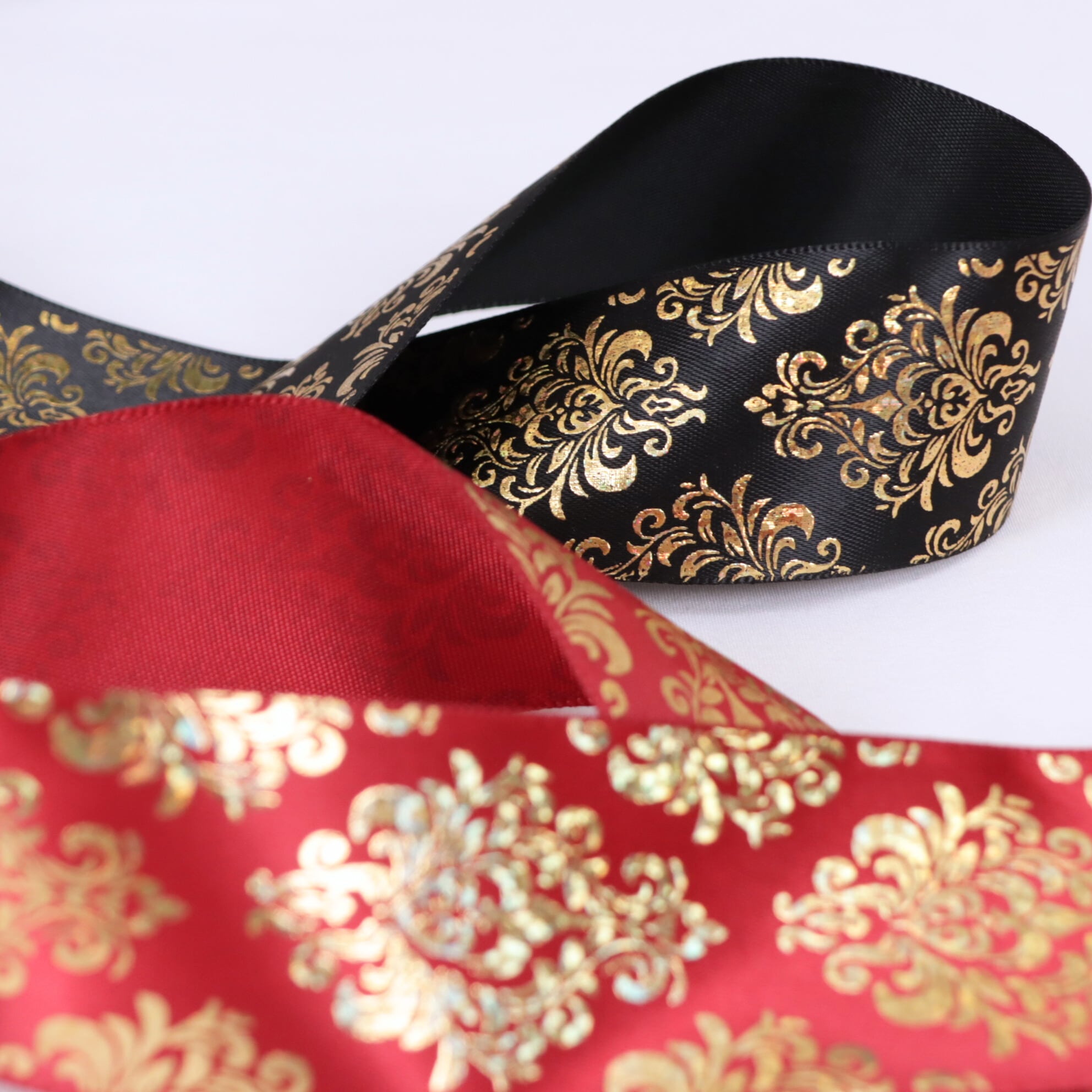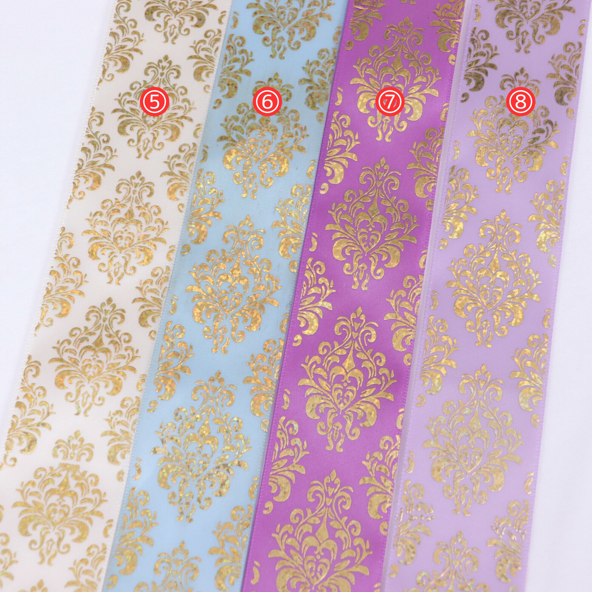 ダマスク柄 サテン リボン 幅約38mm 布 プリント ゴールド 01020027 ハンドメイド 資材 装飾 飾り ロゼット 硬質カード デコ | リボンとパーツのお店 ISEKI オンラインショップ