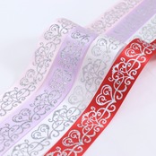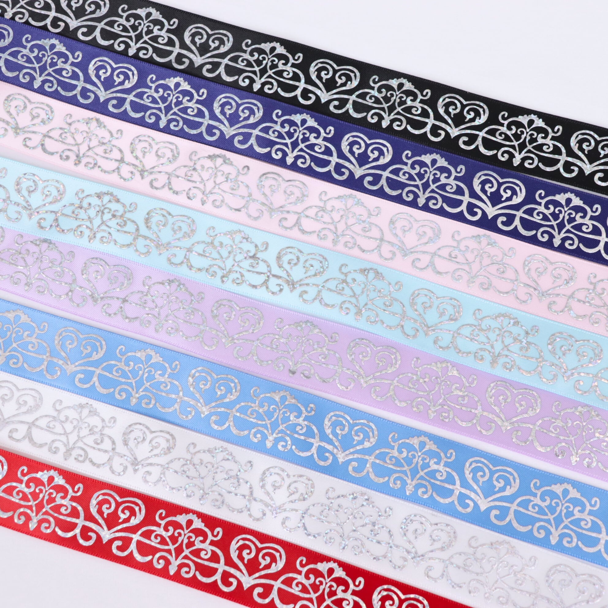 ハート模様 横 柄 サテン リボン 幅約25mm 布 プリント シルバー 01020031 ハンドメイド 資材 装飾 飾り ロゼット 硬質カード デコ | リボンとパーツのお店 ISEKI オンラインショップ