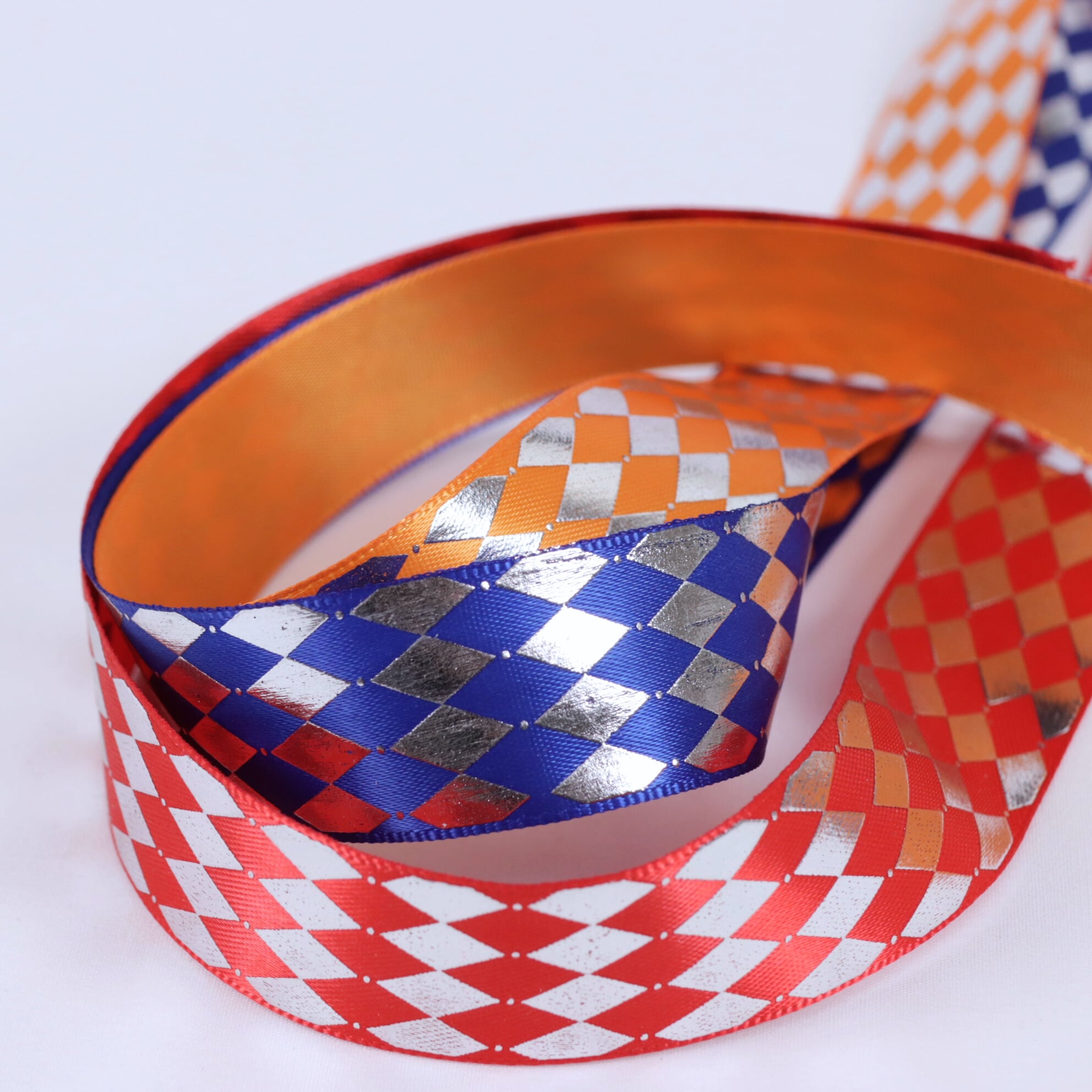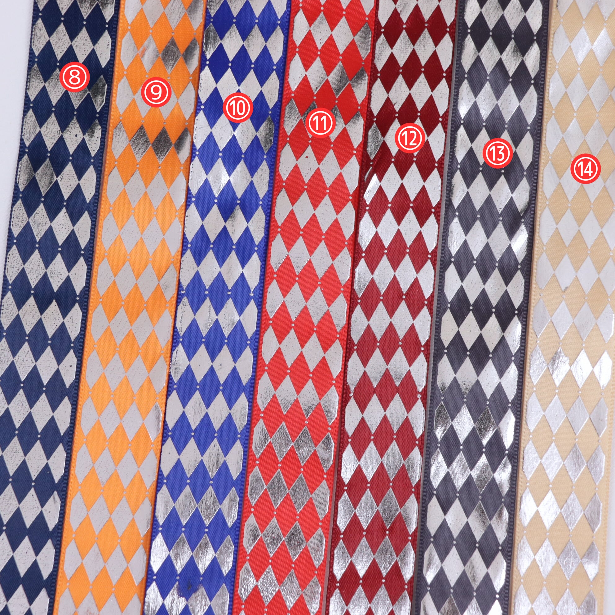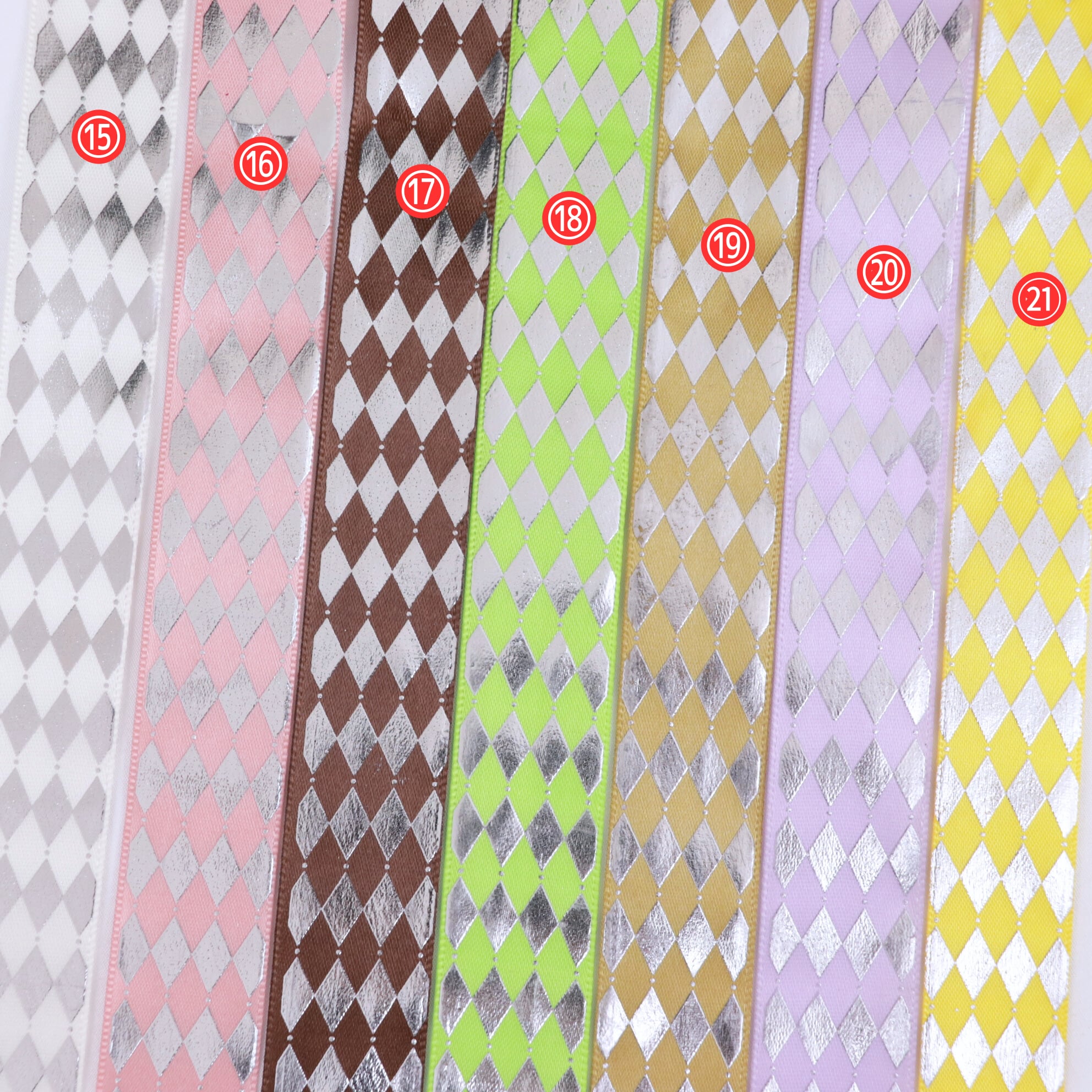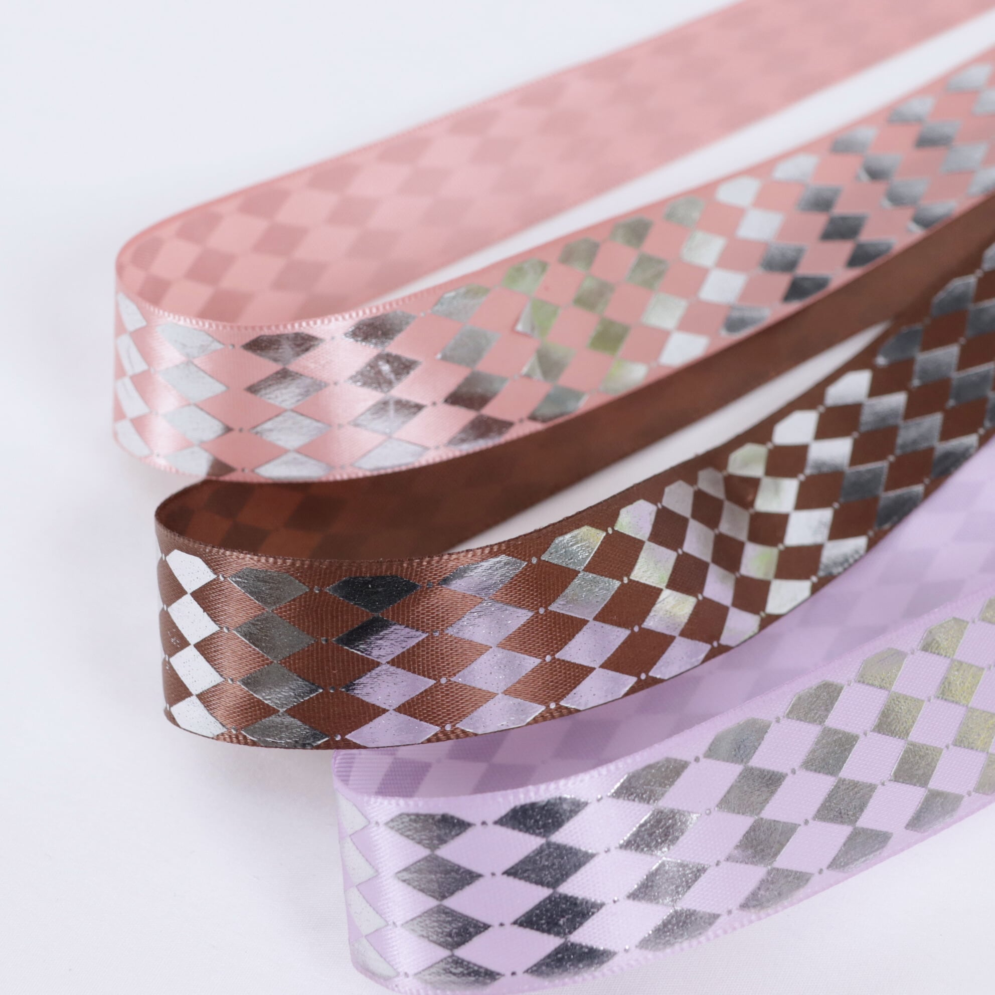 ダイヤ 柄 サテン リボン 幅約25mm 布 プリント シルバー 01020039 ハンドメイド 資材 装飾 飾り ロゼット 硬質カード デコ | リボンとパーツのお店 ISEKI オンラインショップ