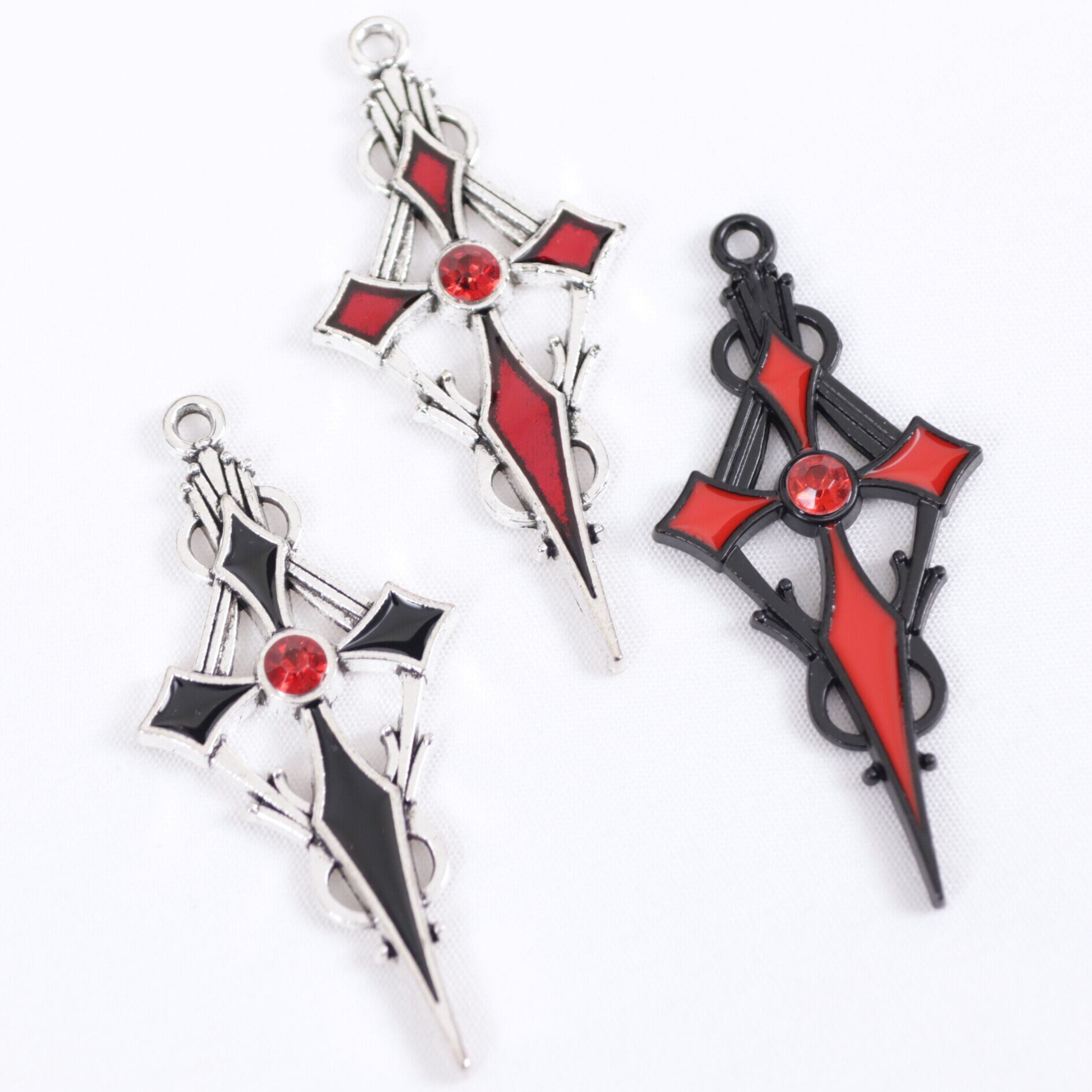 十字架 レッドストーン パーツ 金属 ビジュー 02000004 ハンドメイド 装飾 飾り