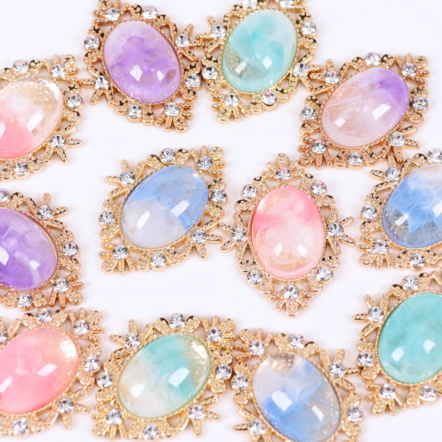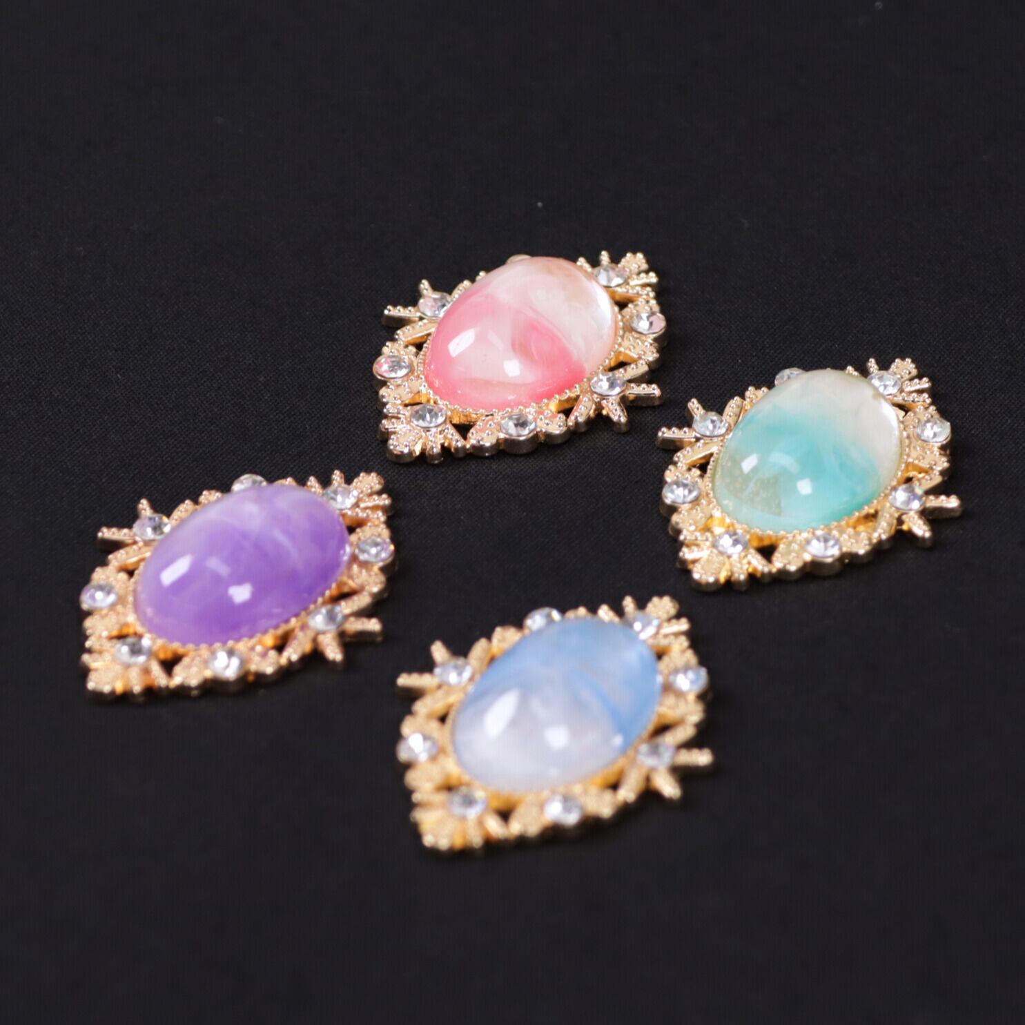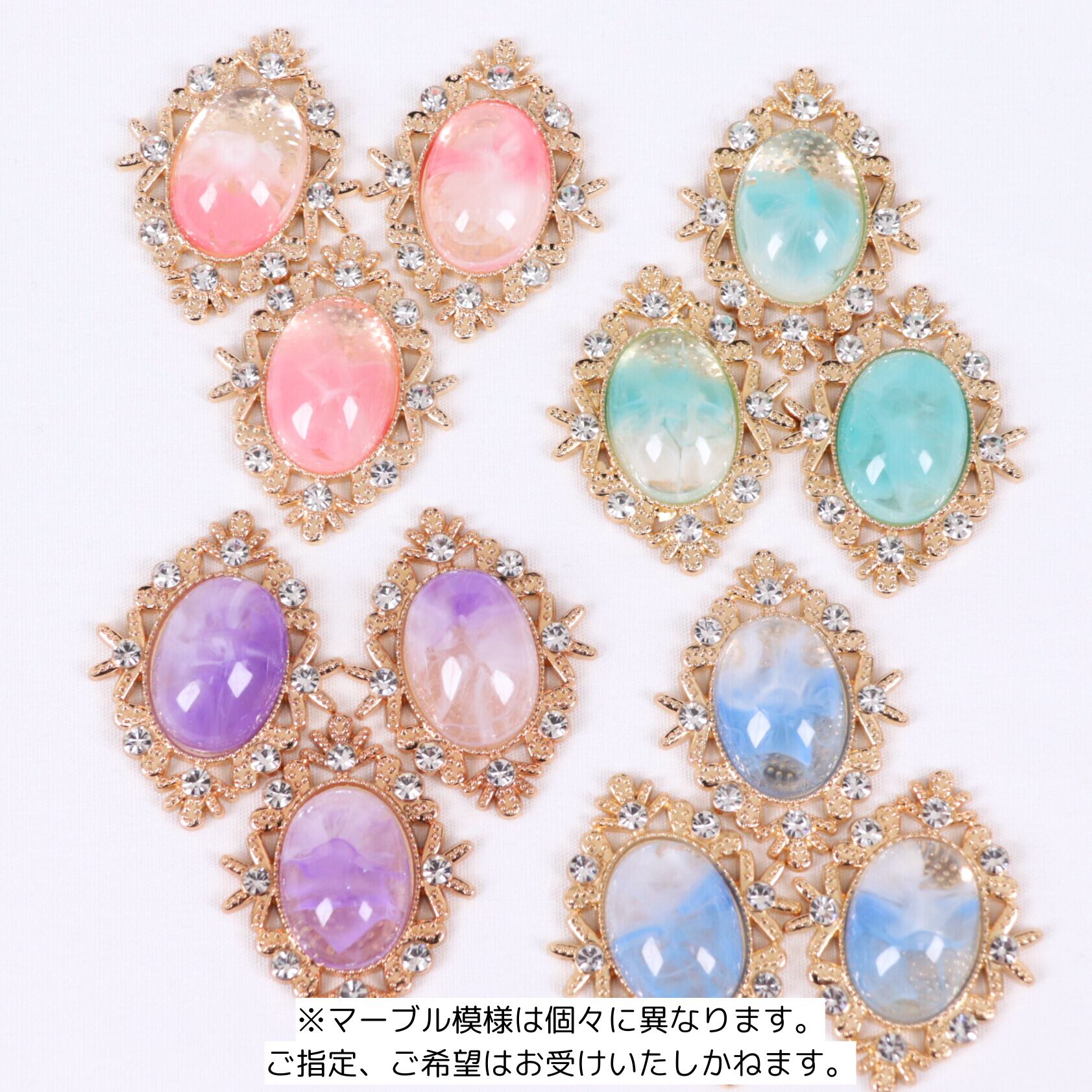 マーブルカラー オーバル型 パーツ  金属 ビジュー  02000031 ハンドメイド 装飾 飾り